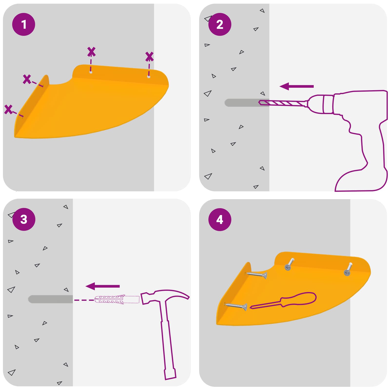 • Seinään asennettavat ruuvit ja tulpat eivät sisälly toimitukseen. Suosittelemme hankkimaan ja käyttämään juuri omille seinillesi sopivia ruuveja ja tulppia.