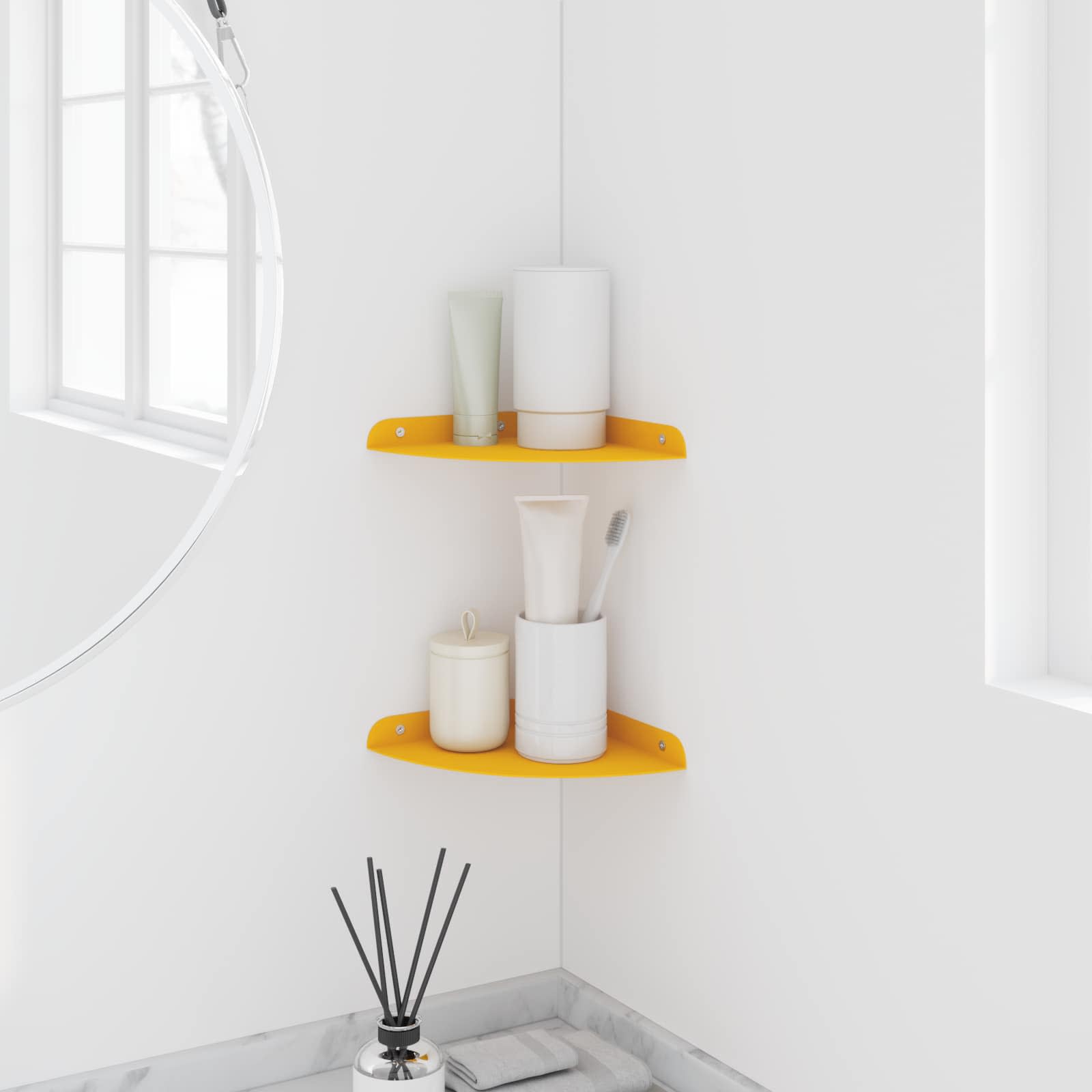 Tämä teräksinen hylly yhdistää modernin tyylin ja käytännöllisyyden. Kulmamuotoilu tekee siitä täydellisen niille, jotka arvostavat minimalistista estetiikkaa ilman käytännöllisyyden uhraamista. Asennettuna se parantaa tilan ilmettä ja tarjoaa samalla tehokasta säilytystä.