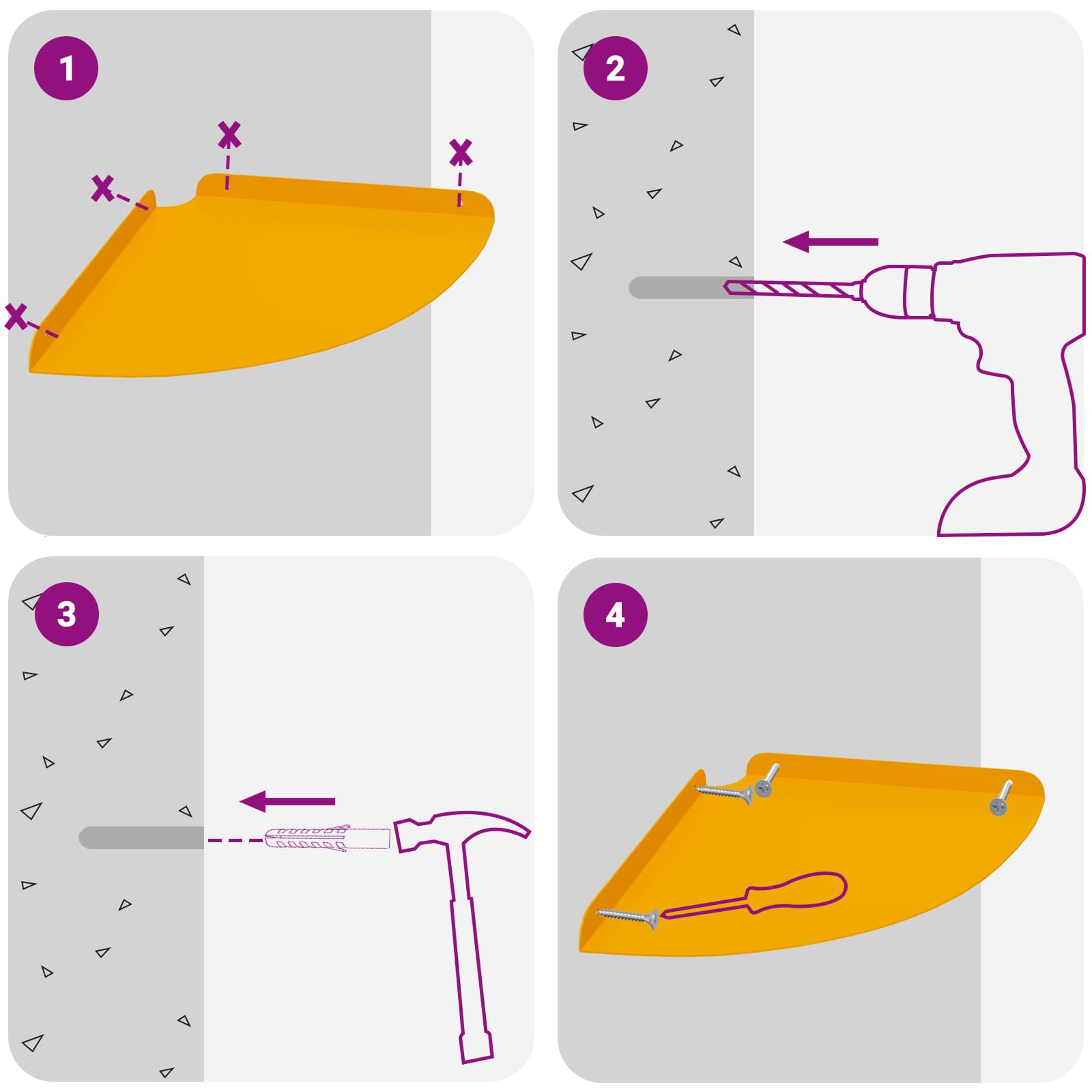 Tämä teräksinen hylly yhdistää modernin tyylin ja käytännöllisyyden. Kulmamuotoilu tekee siitä täydellisen niille, jotka arvostavat minimalistista estetiikkaa ilman käytännöllisyyden uhraamista. Asennettuna se parantaa tilan ilmettä ja tarjoaa samalla tehokasta säilytystä.