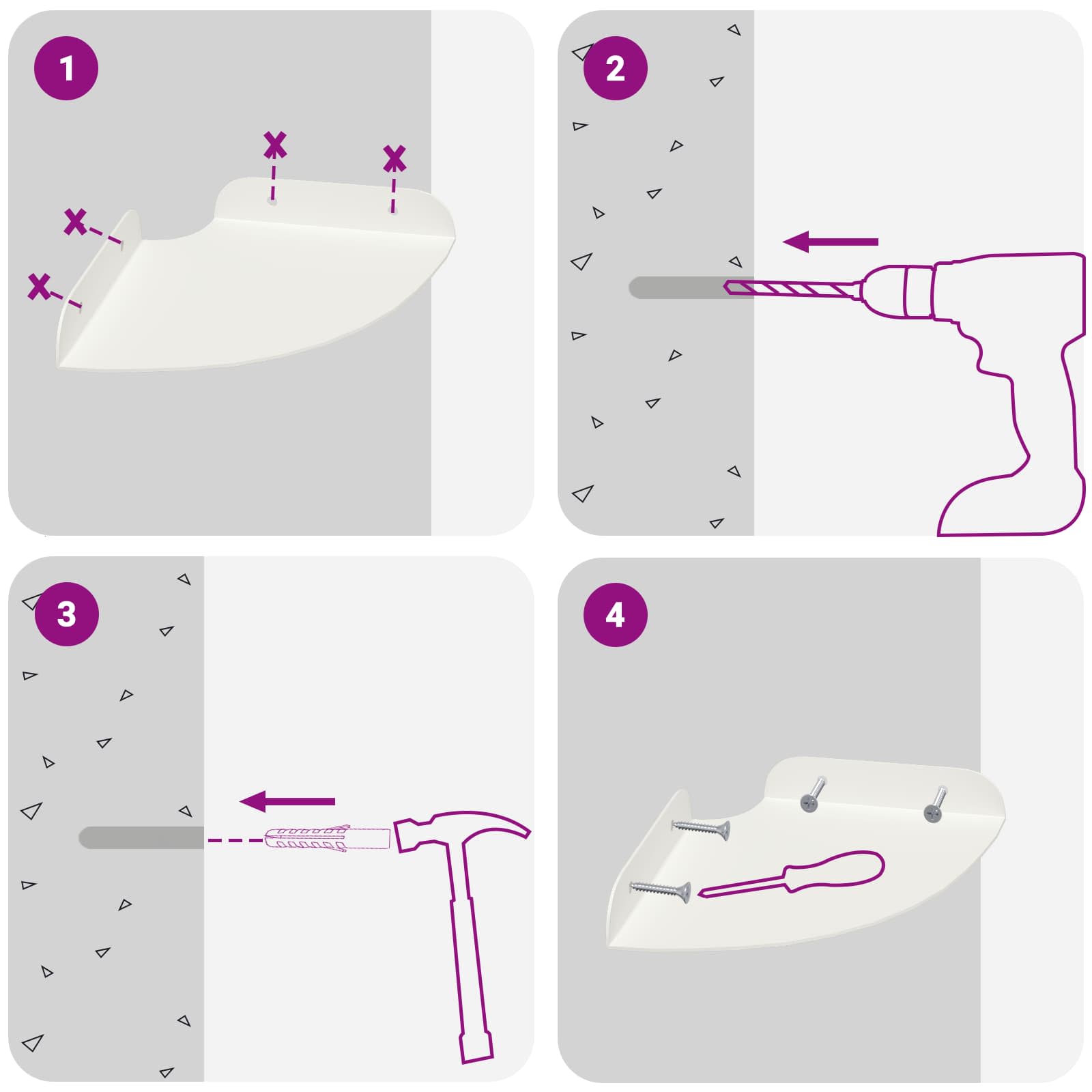 • Seinään asennettavat ruuvit ja tulpat eivät sisälly toimitukseen. Suosittelemme hankkimaan ja käyttämään juuri omille seinillesi sopivia ruuveja ja tulppia.