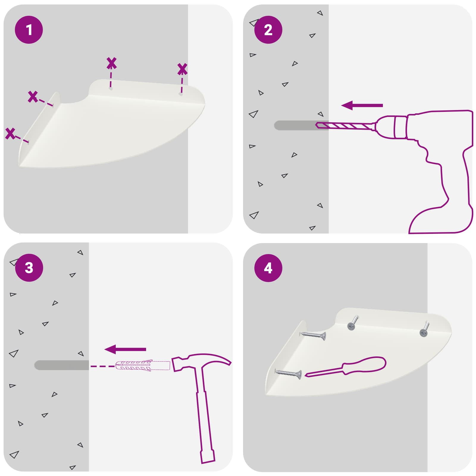 • Seinään asennettavat ruuvit ja tulpat eivät sisälly toimitukseen. Suosittelemme hankkimaan ja käyttämään juuri omille seinillesi sopivia ruuveja ja tulppia.