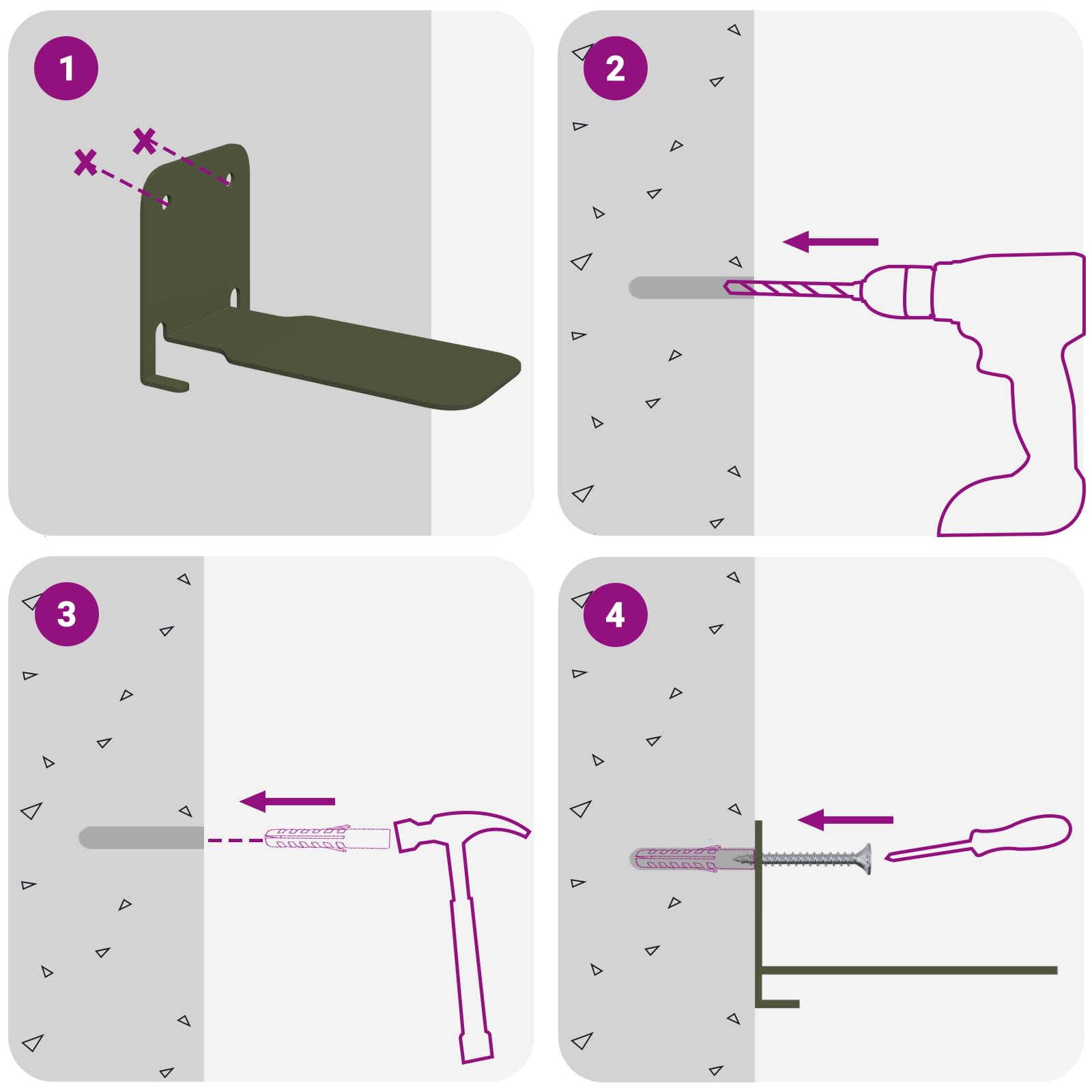 • Seinään asennettavat ruuvit ja tulpat eivät sisälly toimitukseen. Suosittelemme hankkimaan ja käyttämään juuri omille seinillesi sopivia ruuveja ja tulppia.