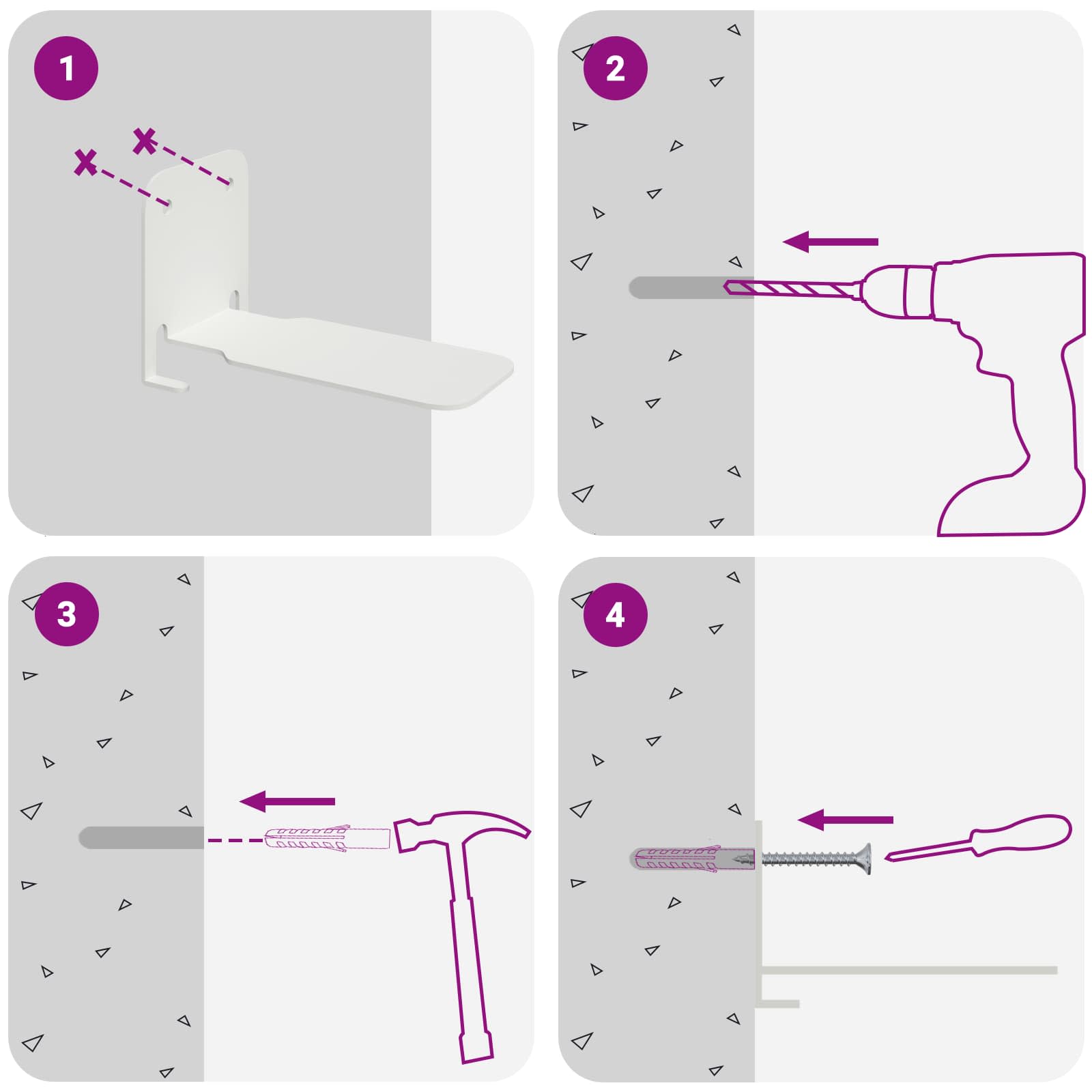• Seinään asennettavat ruuvit ja tulpat eivät sisälly toimitukseen. Suosittelemme hankkimaan ja käyttämään juuri omille seinillesi sopivia ruuveja ja tulppia.
