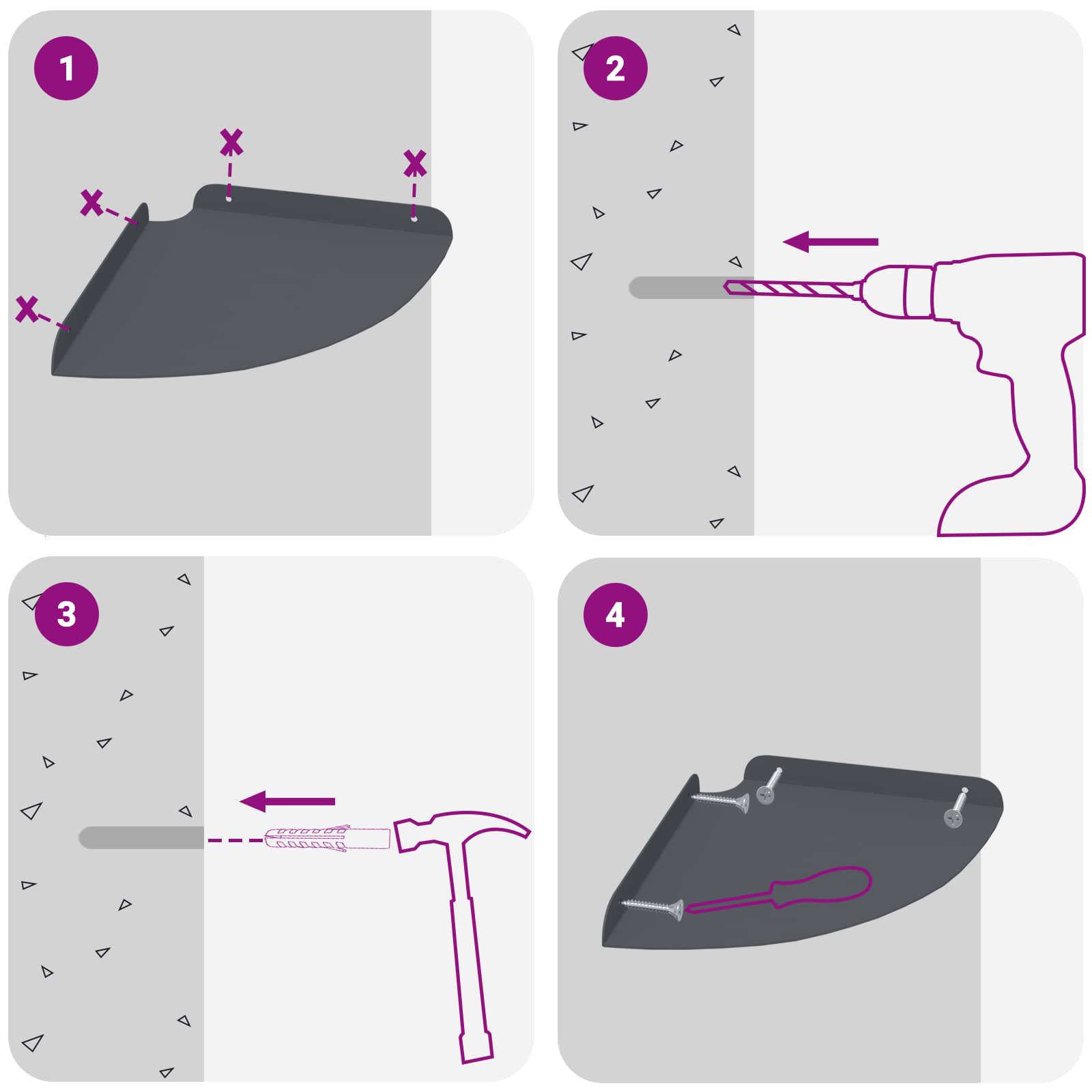 Tämä teräksinen hylly yhdistää modernin tyylin ja käytännöllisyyden. Kulmamuotoilu tekee siitä täydellisen niille, jotka arvostavat minimalistista estetiikkaa ilman käytännöllisyyden uhraamista. Asennettuna se parantaa tilan ilmettä ja tarjoaa samalla tehokasta säilytystä.