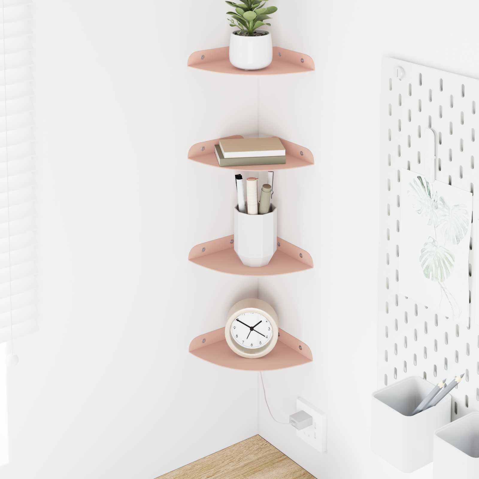 • Kiinnitysmahdollisuudet: Seinään tai kulmaan asennettava suunnittelu maksimoi käyttämättömän seinätilan, joten se on täydellinen pienille asunnoille tai huoneille, joissa on rajallisesti säilytystilaa. Nostamalla esineet lattian ylle, se pitää ympäristön siistinä ja sopii kauniisti kotikulmiin.