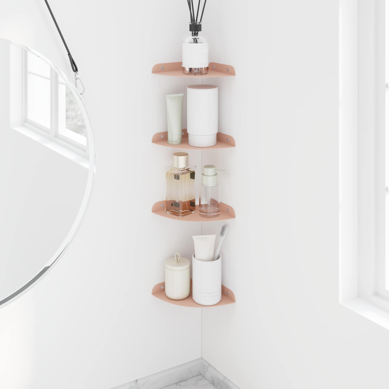 Tämä teräksinen hylly yhdistää modernin tyylin ja käytännöllisyyden. Kulmamuotoilu tekee siitä täydellisen niille, jotka arvostavat minimalistista estetiikkaa ilman käytännöllisyyden uhraamista. Asennettuna se parantaa tilan ilmettä ja tarjoaa samalla tehokasta säilytystä.