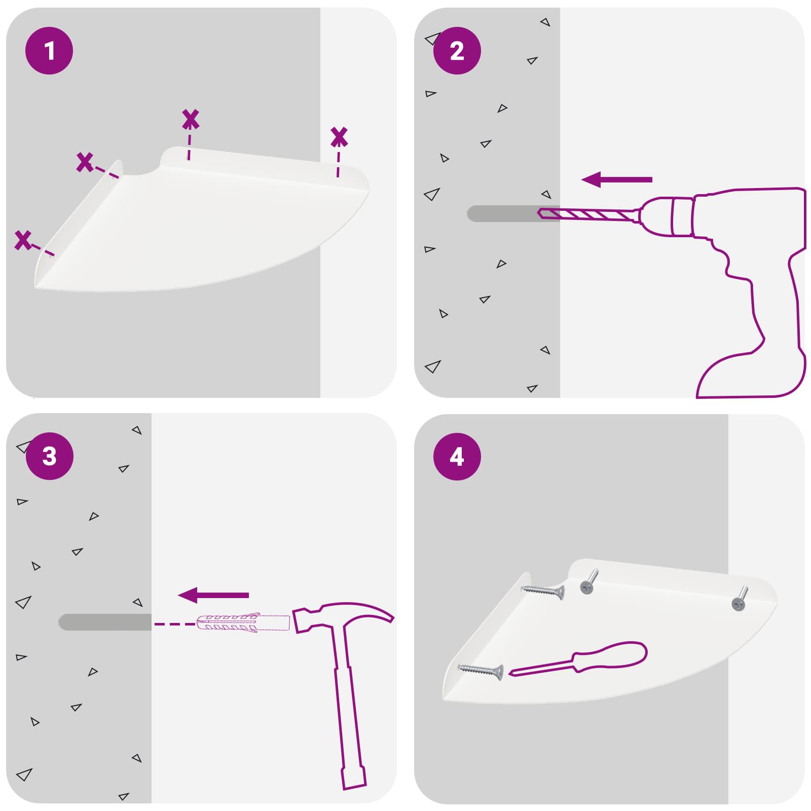 • Seinään asennettavat ruuvit ja tulpat eivät sisälly toimitukseen. Suosittelemme hankkimaan ja käyttämään juuri omille seinillesi sopivia ruuveja ja tulppia.