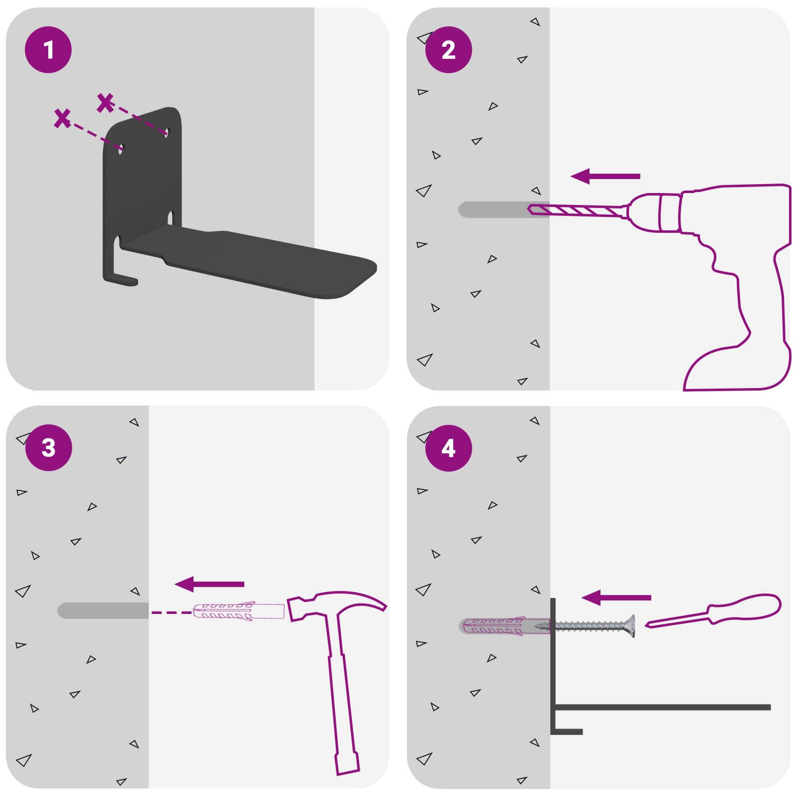 • Seinään asennettavat ruuvit ja tulpat eivät sisälly toimitukseen. Suosittelemme hankkimaan ja käyttämään juuri omille seinillesi sopivia ruuveja ja tulppia.