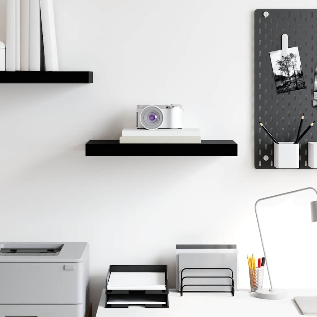 Kelluva seinähylly korkeakiilto musta 50x23x3,8 cm MDF