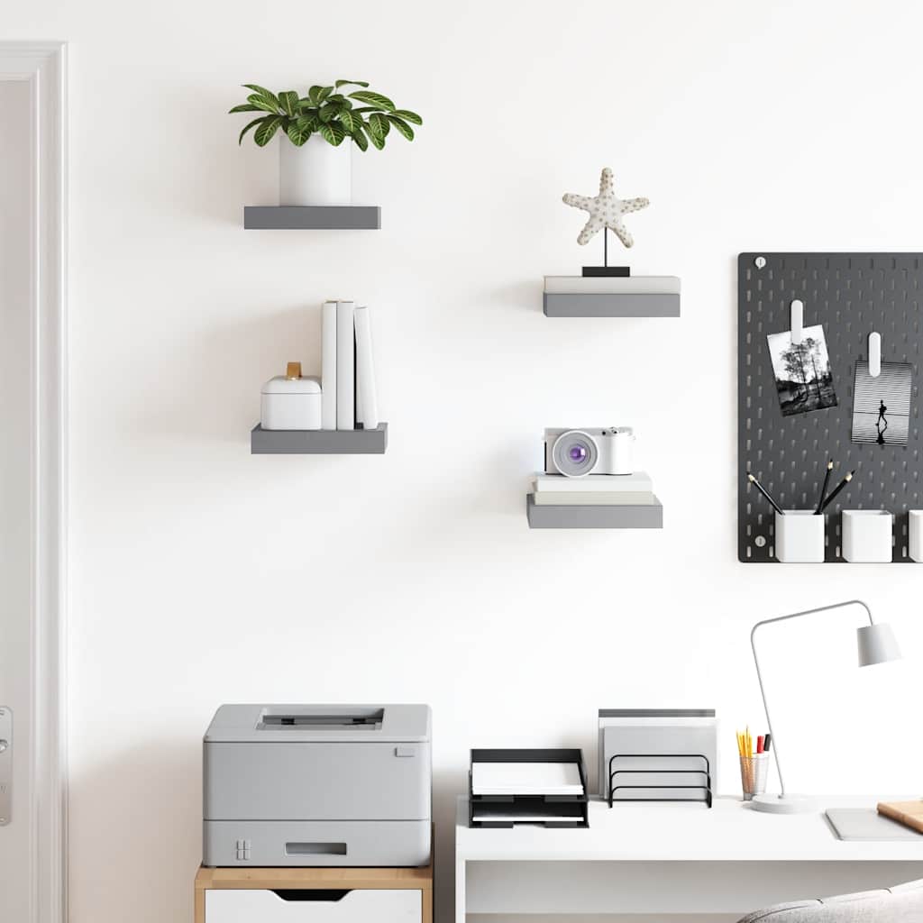 Kelluvat seinähyllyt 4 kpl harmaa 23×23,5×3,8cm MDF