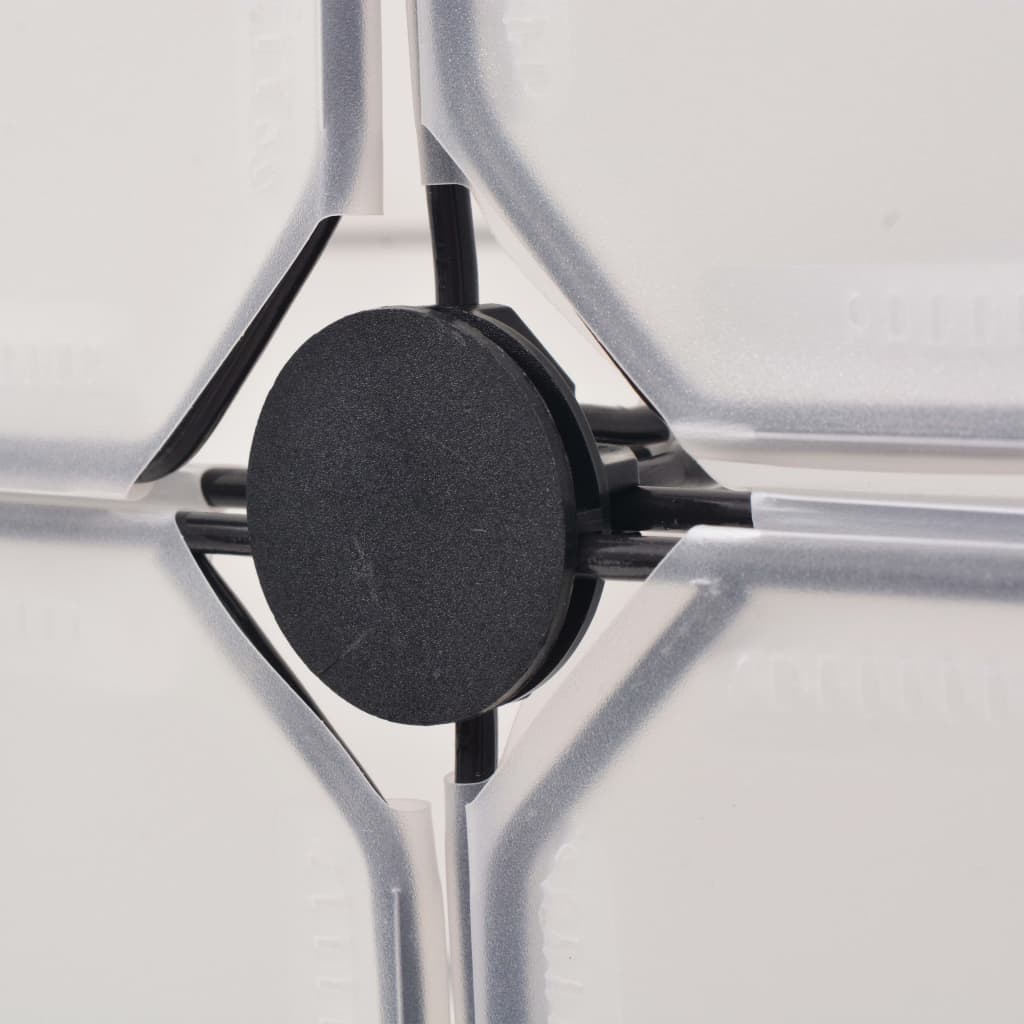 Tämä kenkäteline on valmistettu korkealaatuisista teräsrunkoisista muovipaneeleista, joten se on lujatekoinen ja kestävä. Muovimateriaalin ansiosta kenkäteline on helppo puhdistaa. Kenkäteline voidaan asentaa nopeasti ja helposti toimitukseen sisältyvillä muoviliitoksilla. Se on kevyt, joten sitä on myös helppo liikuttaa.