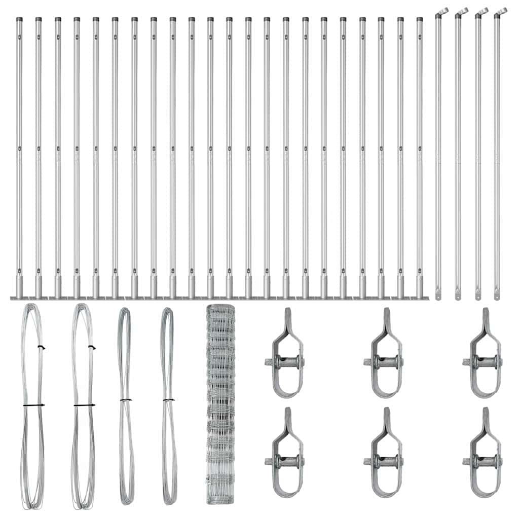 Tämä Kenttäaita yhdistää vahvan galvanoidun teräksen toimivuuteen, mikä tekee siitä loistovalinnan mihin tahansa ulkoeste tarpeeseen. Sen tyylikäs hopeamainen ulkonäkö ja vahva rakenne tarjoavat turvallisuutta ja tyyliä ulkotilallesi – täydellinen kodeille, puutarhoille, tiloille ja muuhun.