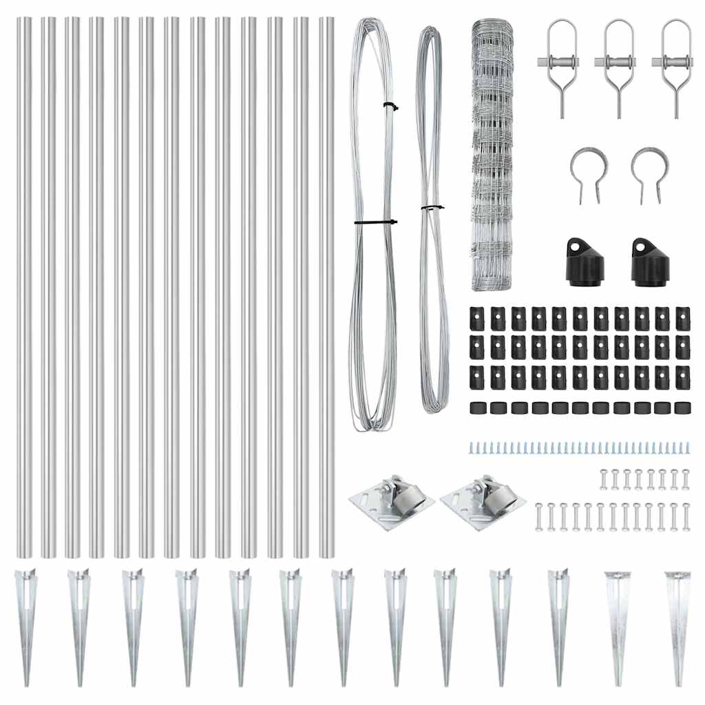 Tämä Kenttäaita on tyylikäs ja minimalistinen galvanoidusta teräksestä tehty ulkoeste. Sileä hopeanvärinen pinta ja kestävä rakenne tarjoavat sekä turvallisuutta että tyyliä puutarhoissa ja muilla ulkoaluilla.