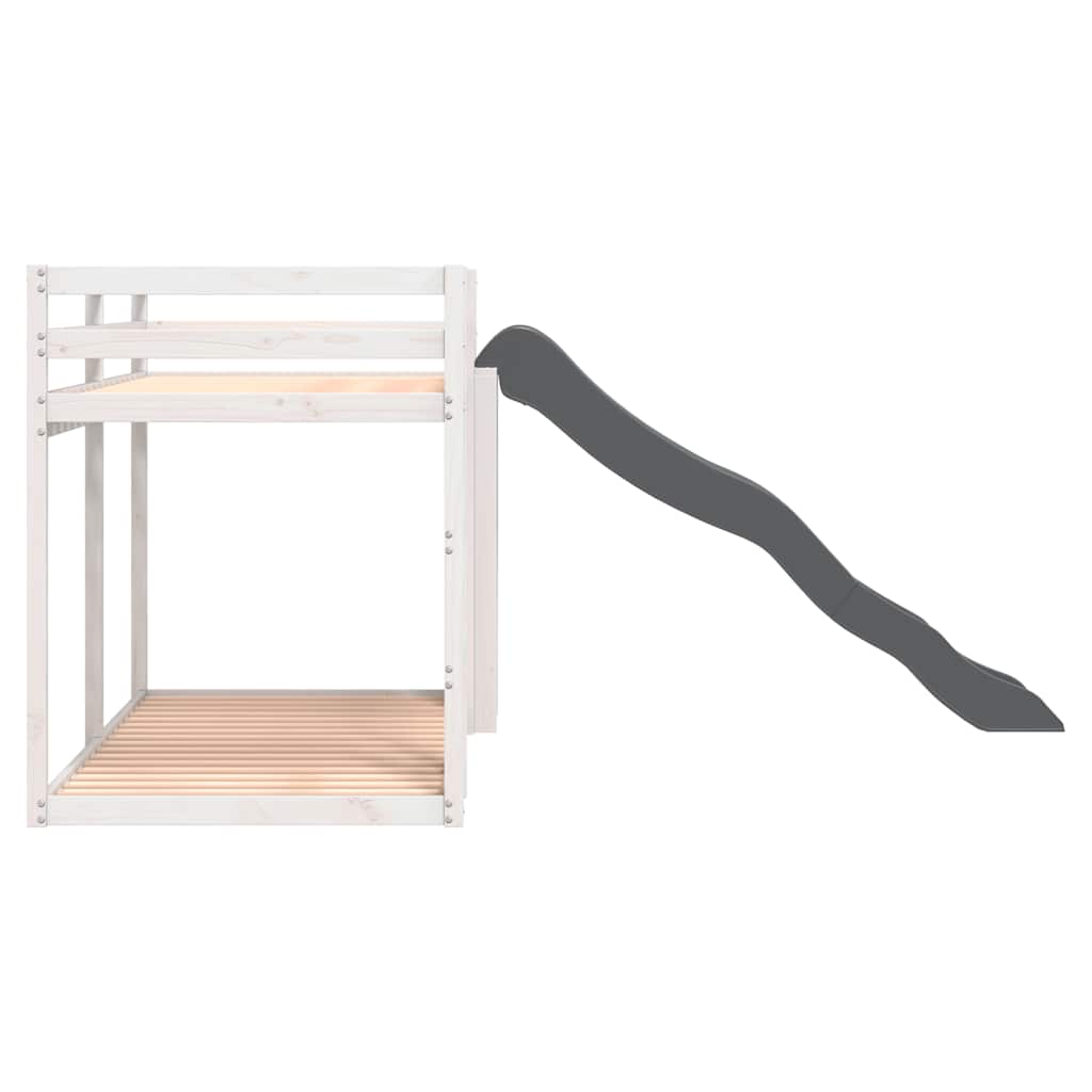 Tämä puinen kerrossänky liukumäellä ja tikkailla on suunniteltu viihdyttäväksi ja tilaa optimoivaksi.