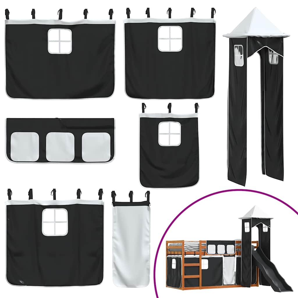 Kerrossänky liukumäellä ja verhoilla mustavalkoinen 90×200 cm
