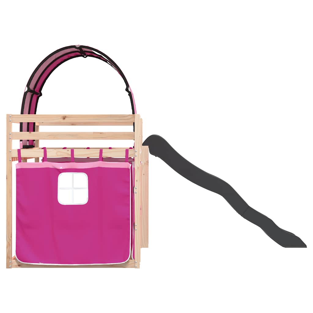Kerrossänky liukumäellä ja verhoilla pinkki 80×200 cm