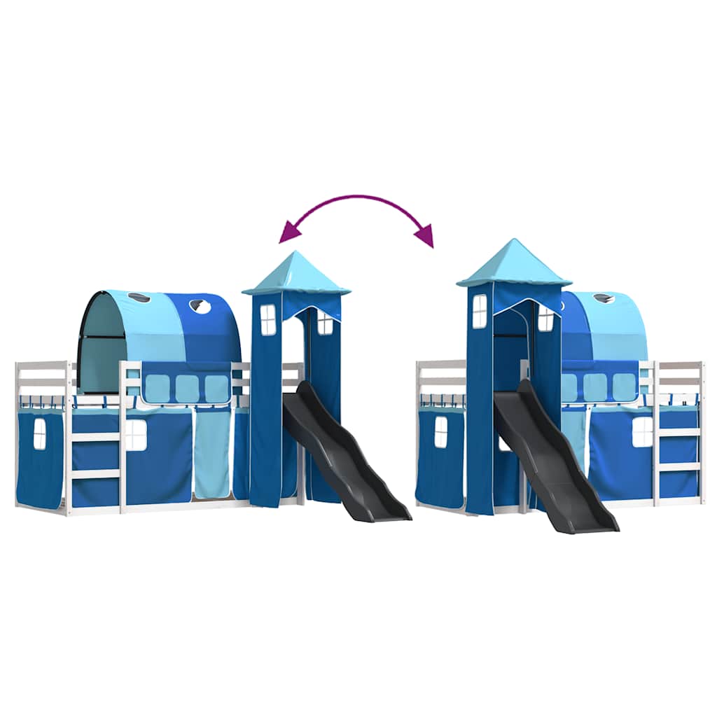 Kerrossänky liukumäellä ja verhoilla sininen 90×190 cm