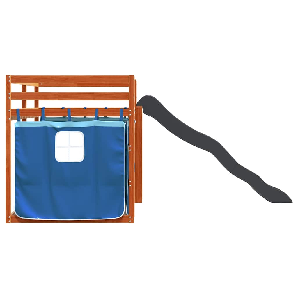 Kerrossänky liukumäellä ja verhoilla sininen 90×200 cm