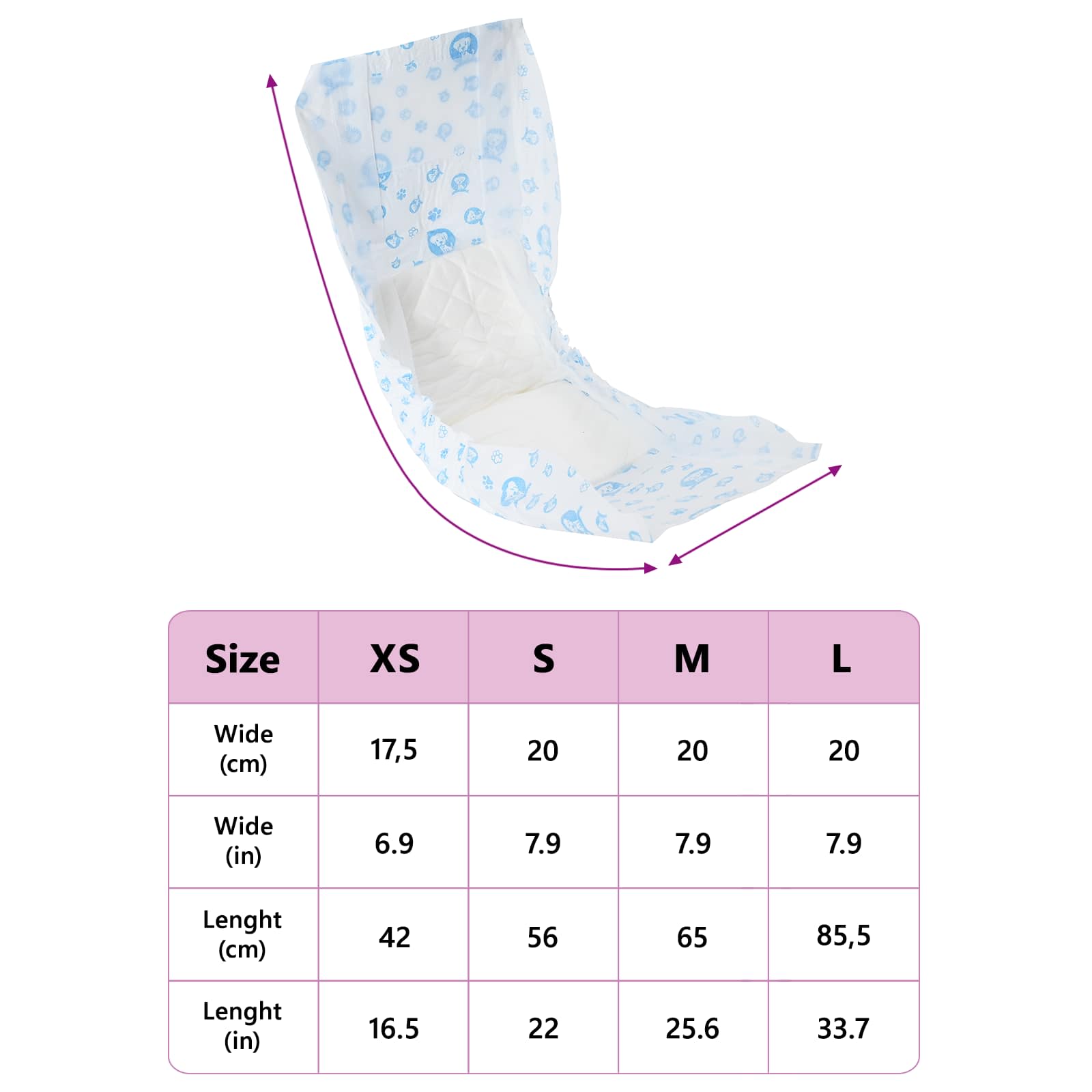 • Hoito-ohjeet: Vaikka vaippa on kertakäyttöinen, sen helppo hävittäminen tekee puhdistamisesta tehokasta. Käytön jälkeen poista vain vaippa ja hävitä se vastuullisesti. Tämä vaivaton ylläpito takaa puhtaan ja raikkaan ympäristön sinulle ja lemmikillesi, edistäen hallittavampaa ja hygieenisempää elämäntapaa.