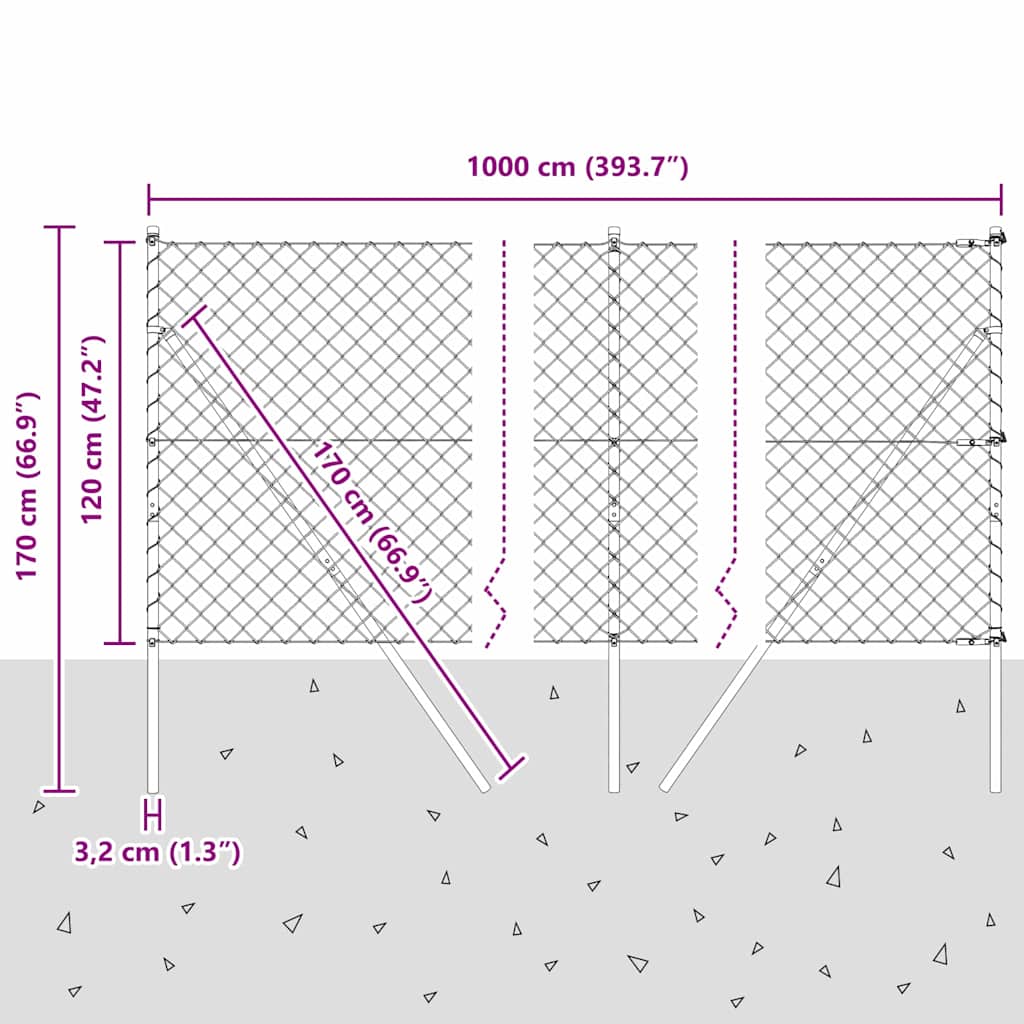 Tämä ketjuaida on loistava valinta, kun haluat luoda turvallisen alueen puutarhasi tai ulkoalueesi ympäri. Se yhdistää turvallisuuden ja käytännöllisyyden. Kestävä teräs ja tyylikäs harmaa viimeistely tekevät tästä aidasta sekä tukevan että hyvin ympäristöönsä sulautuvan.