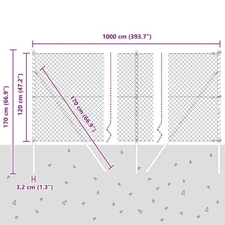 Tämä kettinki-aita on fiksu valinta, kun haluat luoda vahvan rajan ulkotiloillesi. Se tuo turvallisuutta ja käytännöllisyyttä. Valmistettu jauhemaalatusta teräksestä, aita on kirkkaan vihreä ja näyttää hyvältä puutarhassasi samalla, kun se pitää hyvin paikoillaan.