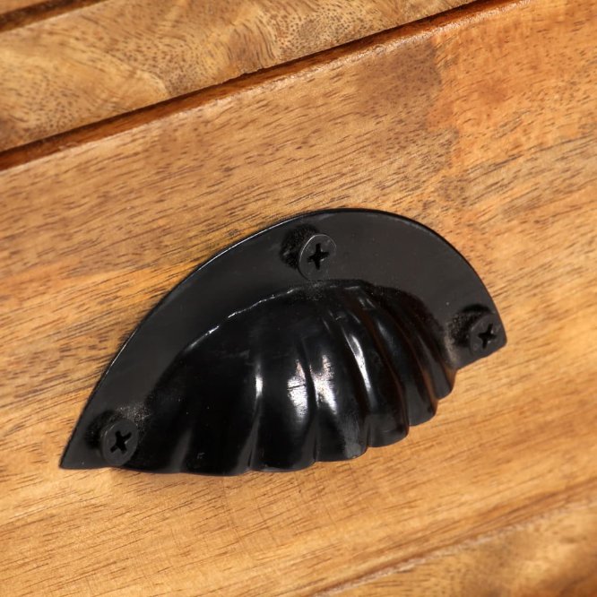 Kirjahyllyssä on vankka jauhemaalatusta teräksestä valmistettu runko, joka tuo sille teollista tyyliä. Täydestä mangopuusta valmistetut hyllyt ja laatikot ovat vakaita, kestäviä ja kauniita, ja ne huokuvat upeaa retrotyyliä. Jokainen työvaihe on suoritettu erittäin huolellisesti, olipa kyseessä kiillotus, maalaus tai lakkaus. Käsityön jälki ja kauniit puun pintakuviot tekevät jokaisesta huonekalusta ainutlaatuisen ja hieman toisistaan eroavan.