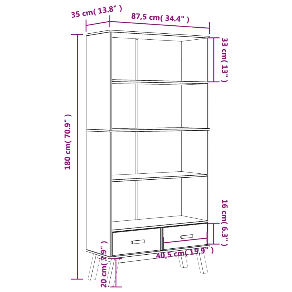 • Mitat: 87,5 x 35 x 180 cm (L x S x K)
