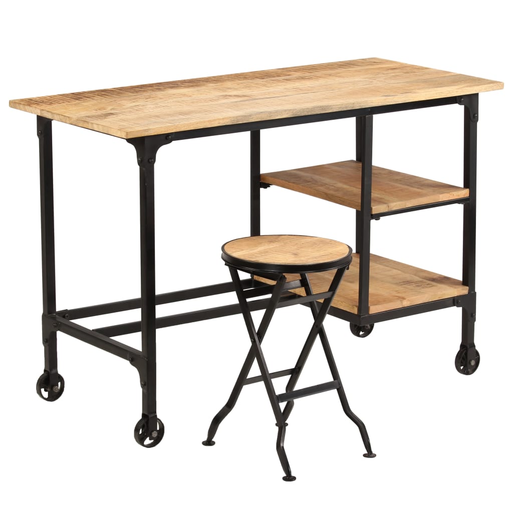 Kirjoituspöytä ja taitettava jakkara mangopuu 115x50x76 cm