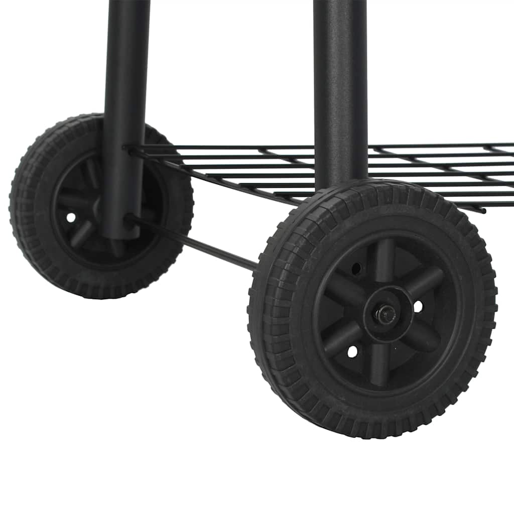 Savustimessa on pieni hylly edessä ja säilytyshylly grillin alla, joille voit asettaa mausteet, ainekset, grillitarvikkeet ja muut tärkeät tavarat. Siinä on 2 rengasta, joilla sitä on helppo siirtää ympäriinsä juhlia, piknikkejä ja kokoontumisia varten.