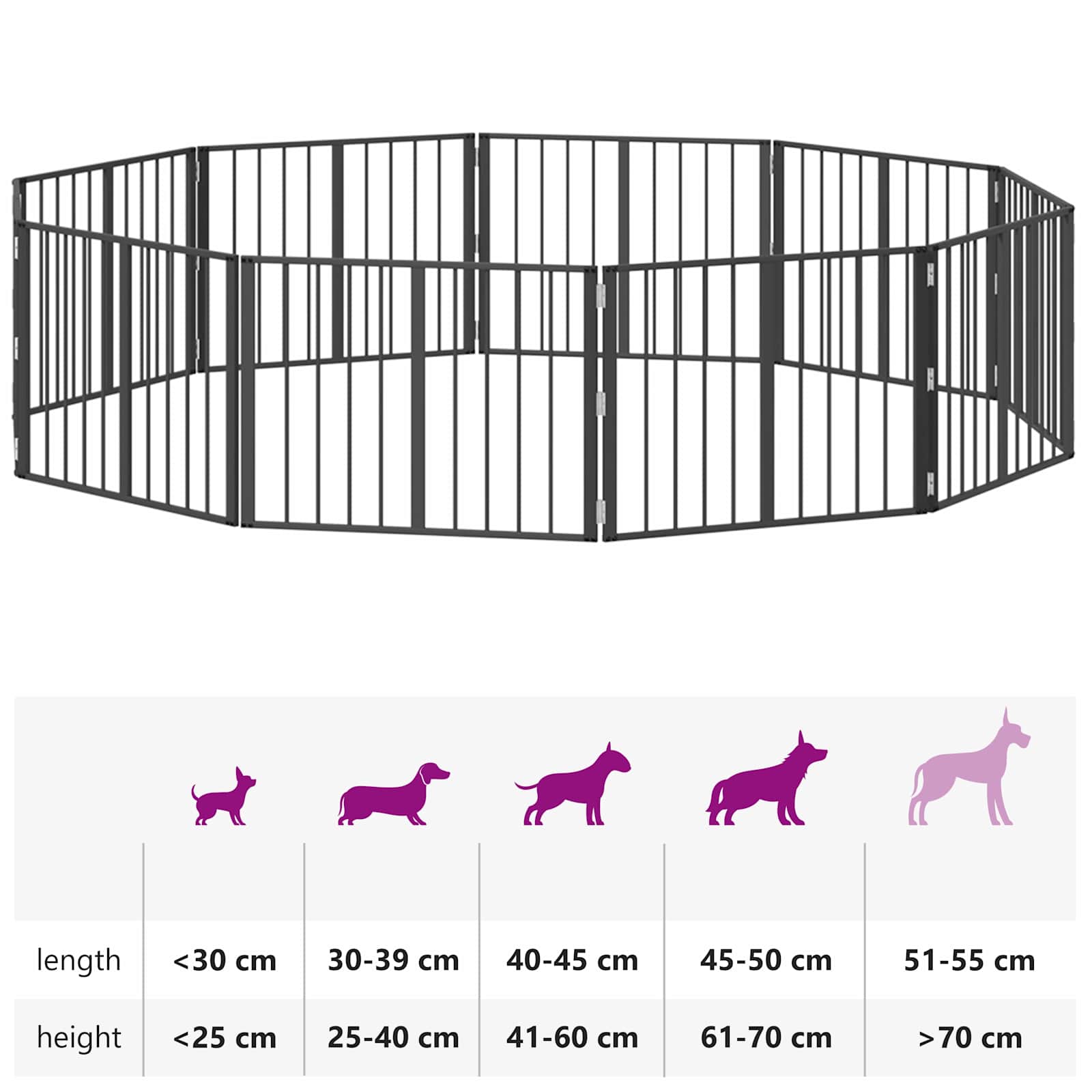 • Monikäyttöiset käyttötarkoitukset: Sopiva turvallisten sisätilojen luomiseen, aita voidaan asettaa oviaukkojen, käytävien tai avointen alueiden yli. Sen muunneltava muotoilu tekee siitä helpon tavan perustaa turvallinen tila, jossa koirasi voi rentoutua tai leikkiä.