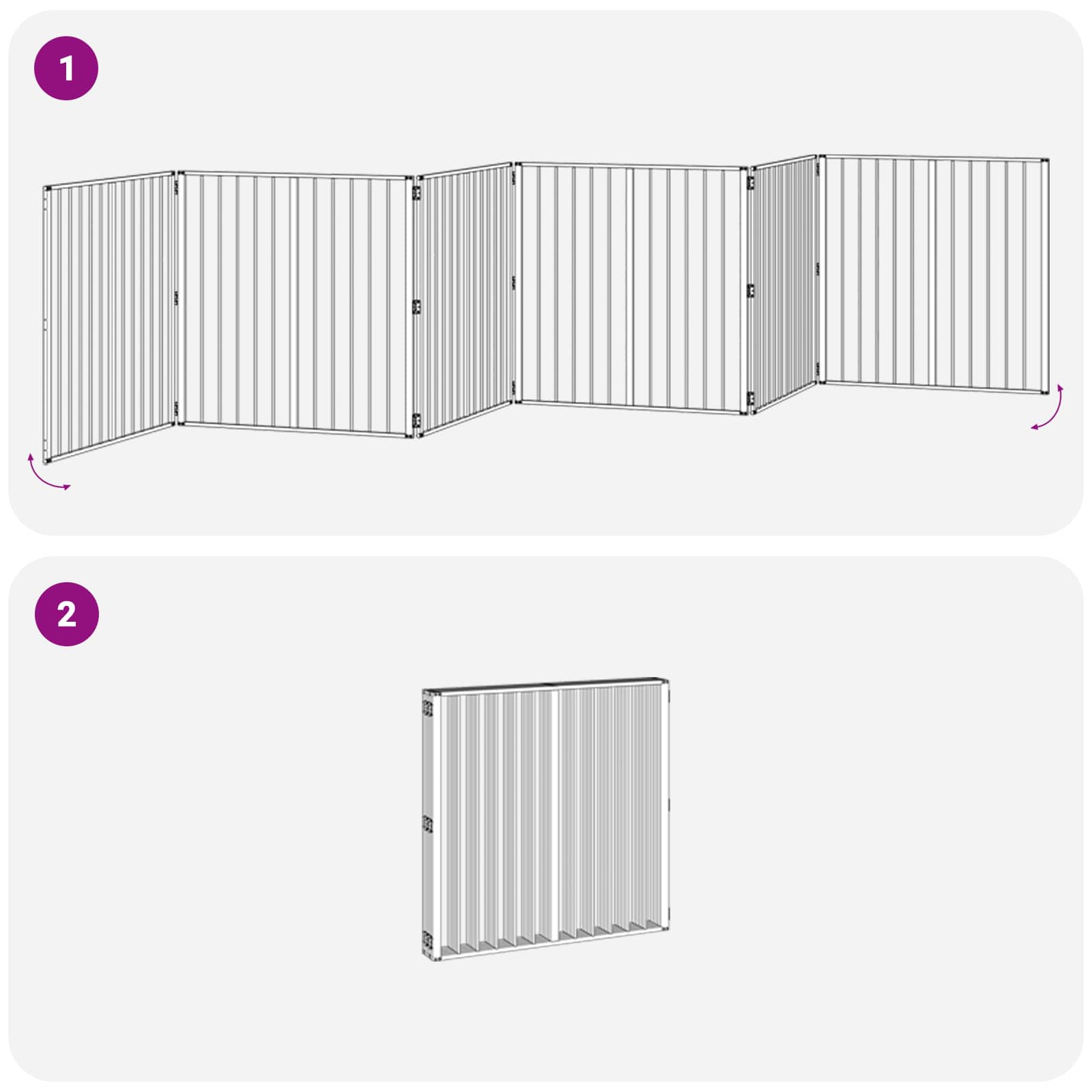 • Monikäyttöiset käyttötarkoitukset: Sopiva turvallisten sisätilojen luomiseen, aita voidaan asettaa oviaukkojen, käytävien tai avointen alueiden yli. Sen muunneltava muotoilu tekee siitä helpon tavan perustaa turvallinen tila, jossa koirasi voi rentoutua tai leikkiä.