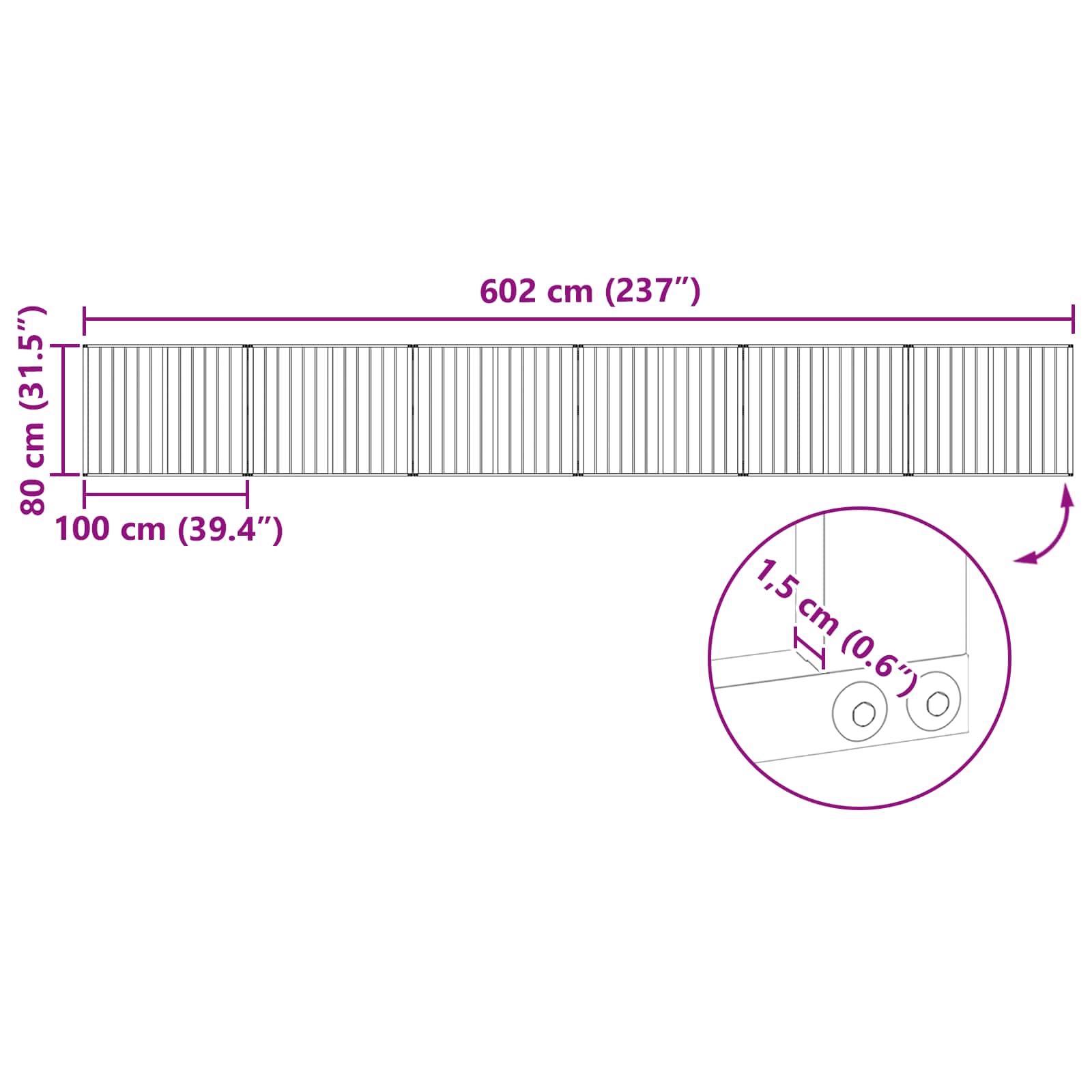 • Yleiset mitat: 602 x 1,5 x 80 cm (P x L x K)