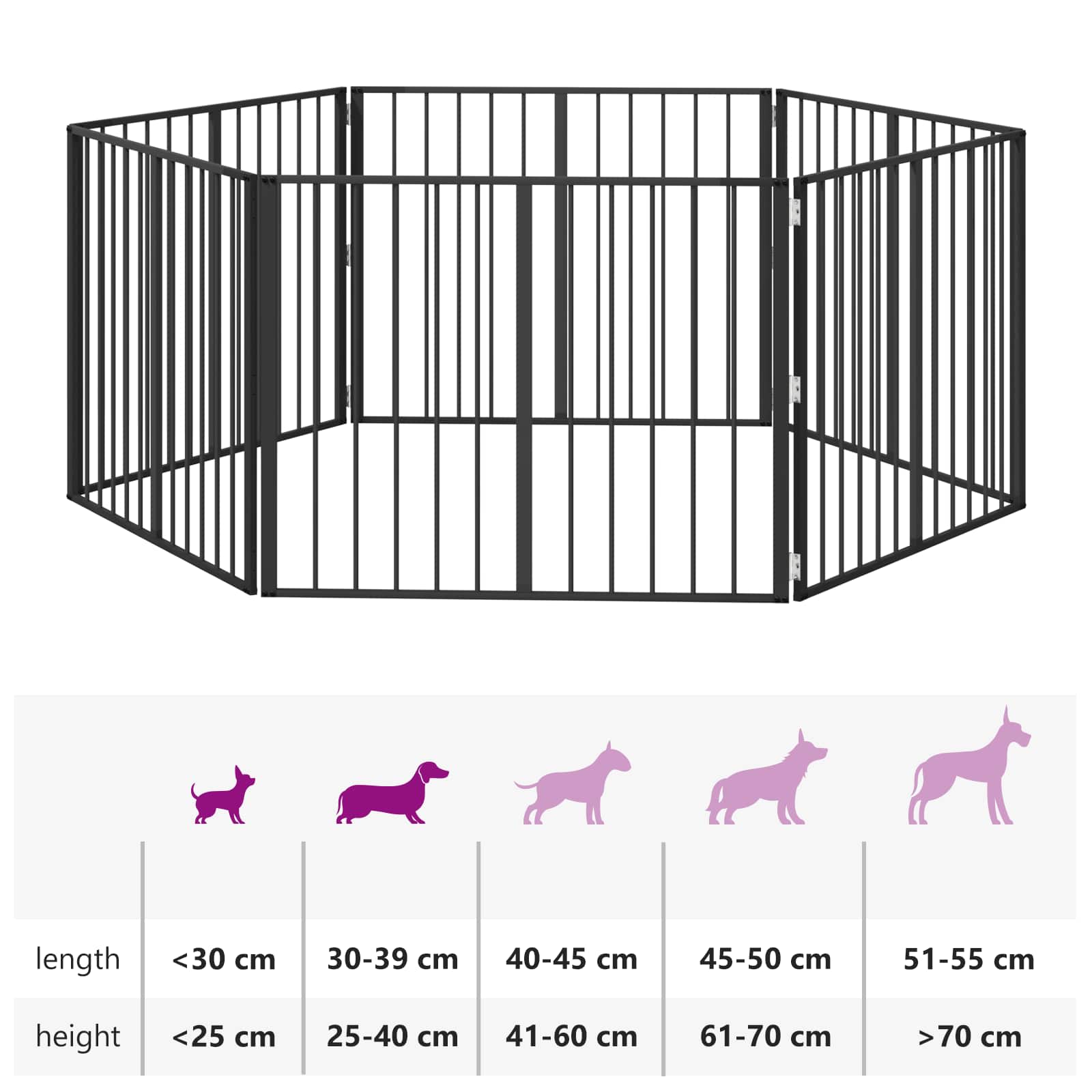 • Monikäyttöiset käyttötarkoitukset: Sopiva turvallisten sisätilojen luomiseen, aita voidaan asettaa oviaukkojen, käytävien tai avointen alueiden yli. Sen muunneltava muotoilu tekee siitä helpon tavan perustaa turvallinen tila, jossa koirasi voi rentoutua tai leikkiä.