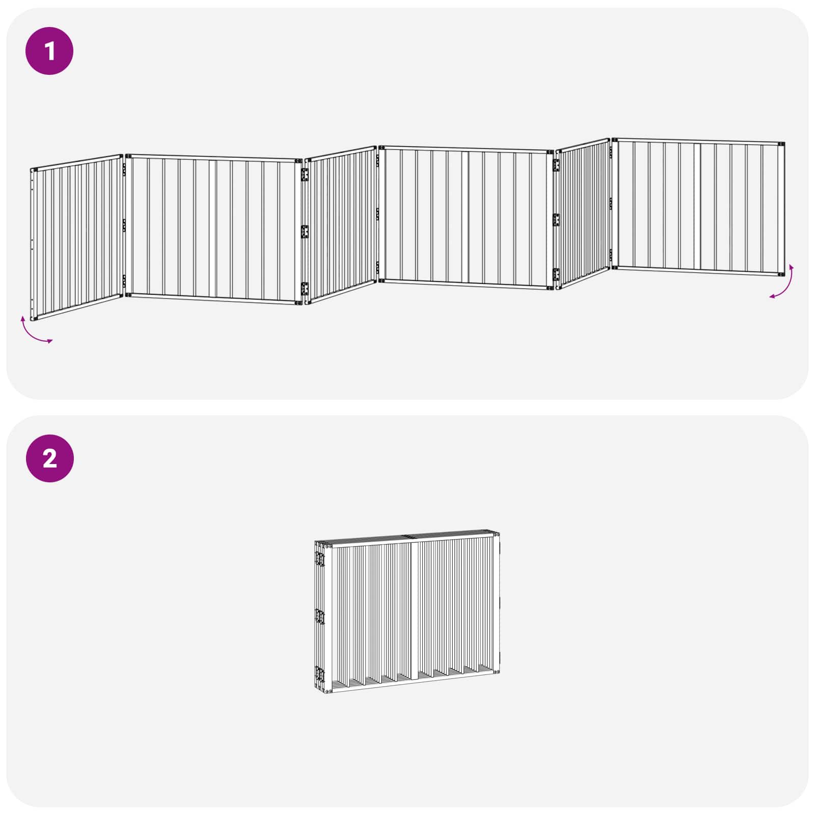 • Monikäyttöiset käyttötarkoitukset: Sopiva turvallisten sisätilojen luomiseen, aita voidaan asettaa oviaukkojen, käytävien tai avointen alueiden yli. Sen muunneltava muotoilu tekee siitä helpon tavan perustaa turvallinen tila, jossa koirasi voi rentoutua tai leikkiä.