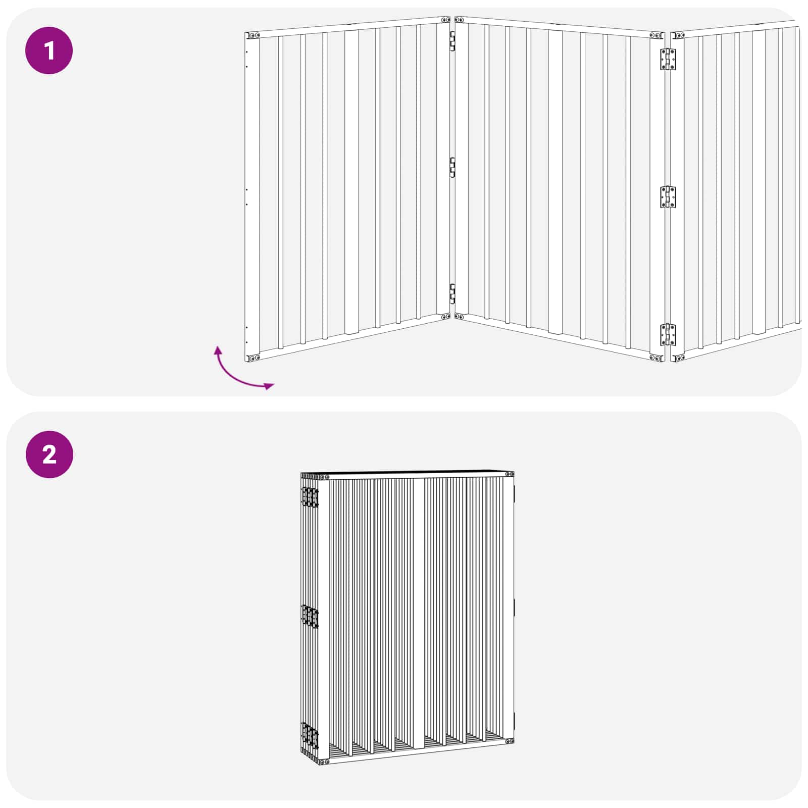 • Helppohoitoisuus: Sen tyylikkään ilmeen ylläpitämiseksi tämä lemmikkitarha vaatii minimaalista huoltoa, kuten satunnaista pölyttämistä tai pyyhkimistä. Se on suunniteltu yksinkertaiseksi, jolloin voit nauttia siististä, lemmikkien ystävällisestä alueesta ilman suurta vaivannäköä.
