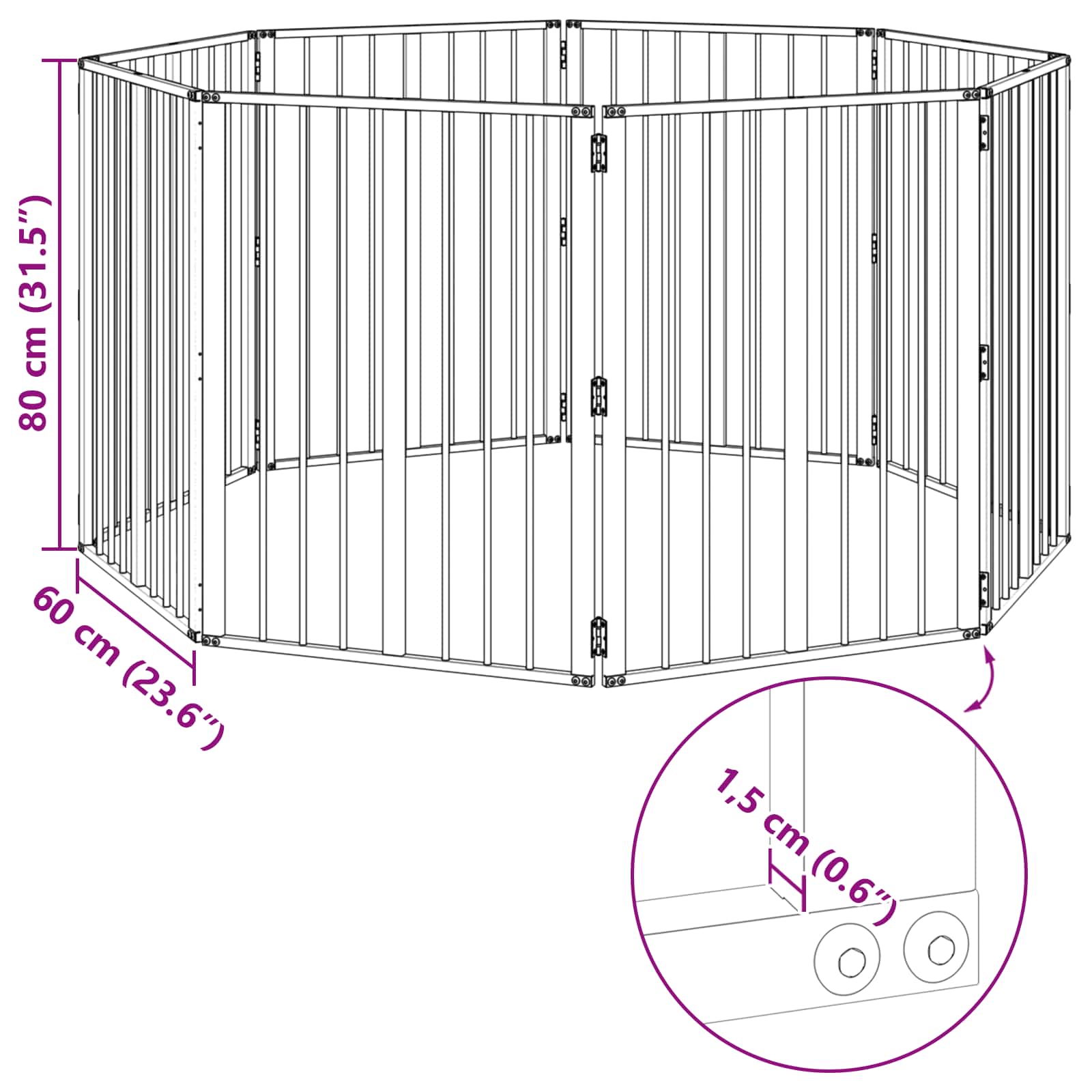 • Kuumasinkityn teräksen rakenne: Koko aitaus on valmistettu kuumasinkitystä teräksestä, joka tarjoaa tukevan ja kestävän rungon, joka kestää päivittäisen käytön kulumista. Tämä takaa sekä jäykkyyden että pitkän käyttöiän, mikä tekee siitä ihanteellisen ratkaisun energisille lemmikeille. Tämä materiaali takaa myös minimaalisen ylläpidon, sillä lisähoitoja ei tarvita.
