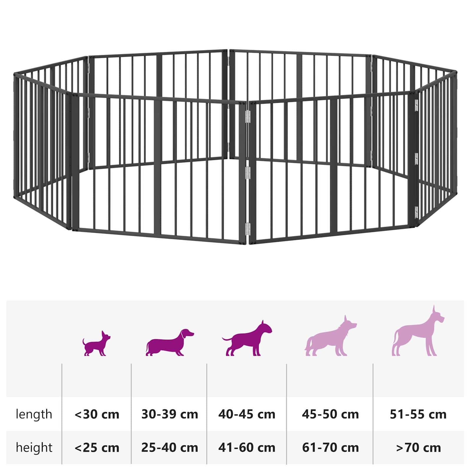 • Monikäyttöiset käyttötarkoitukset: Sopiva turvallisten sisätilojen luomiseen, aita voidaan asettaa oviaukkojen, käytävien tai avointen alueiden yli. Sen muunneltava muotoilu tekee siitä helpon tavan perustaa turvallinen tila, jossa koirasi voi rentoutua tai leikkiä.