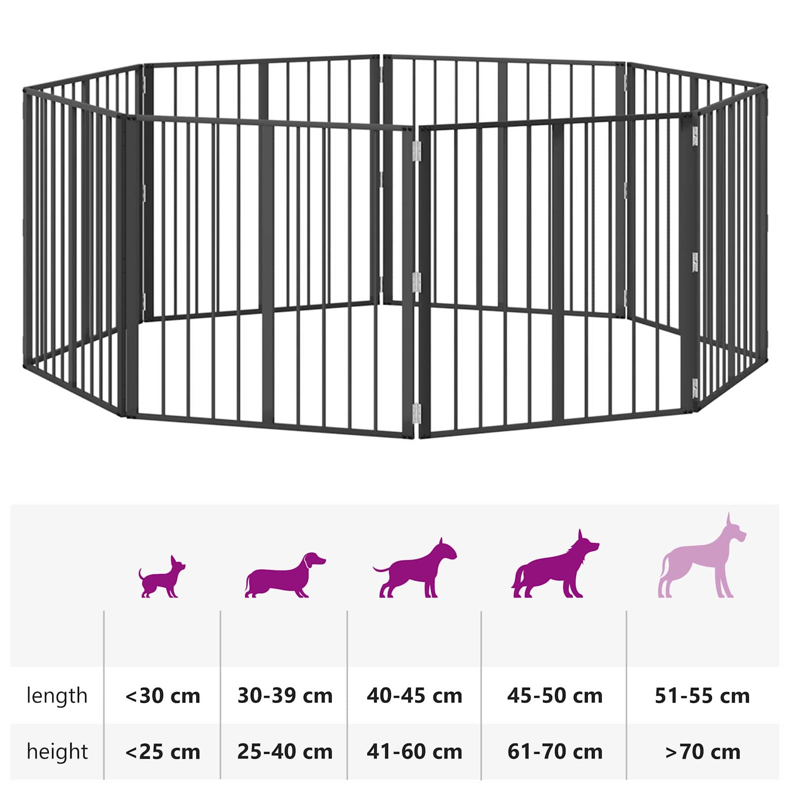 Koiraportti 8 pcs Musta 80 x 80 cm Galvanoitu teräs