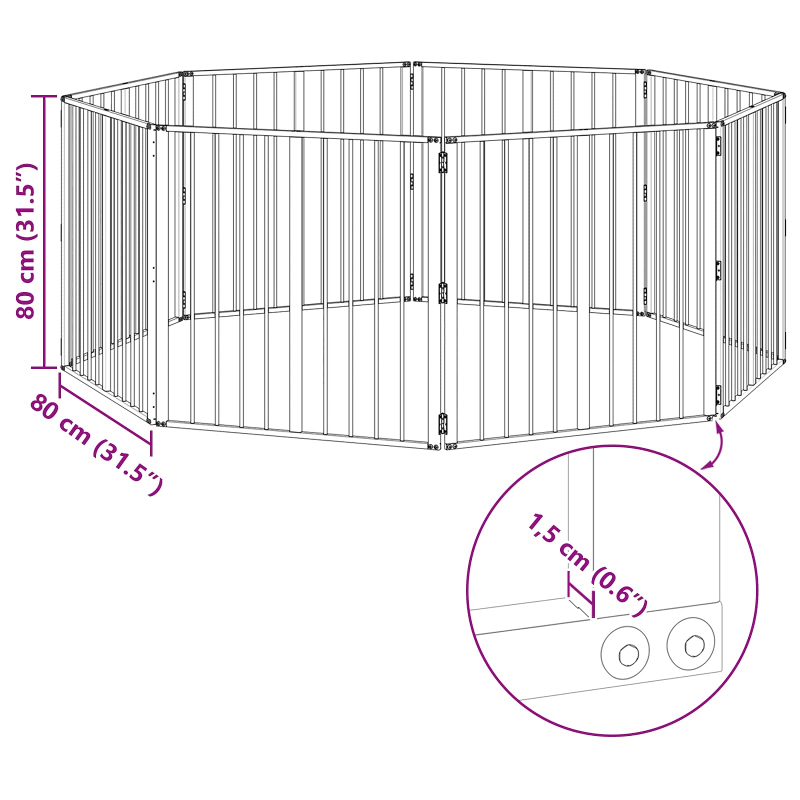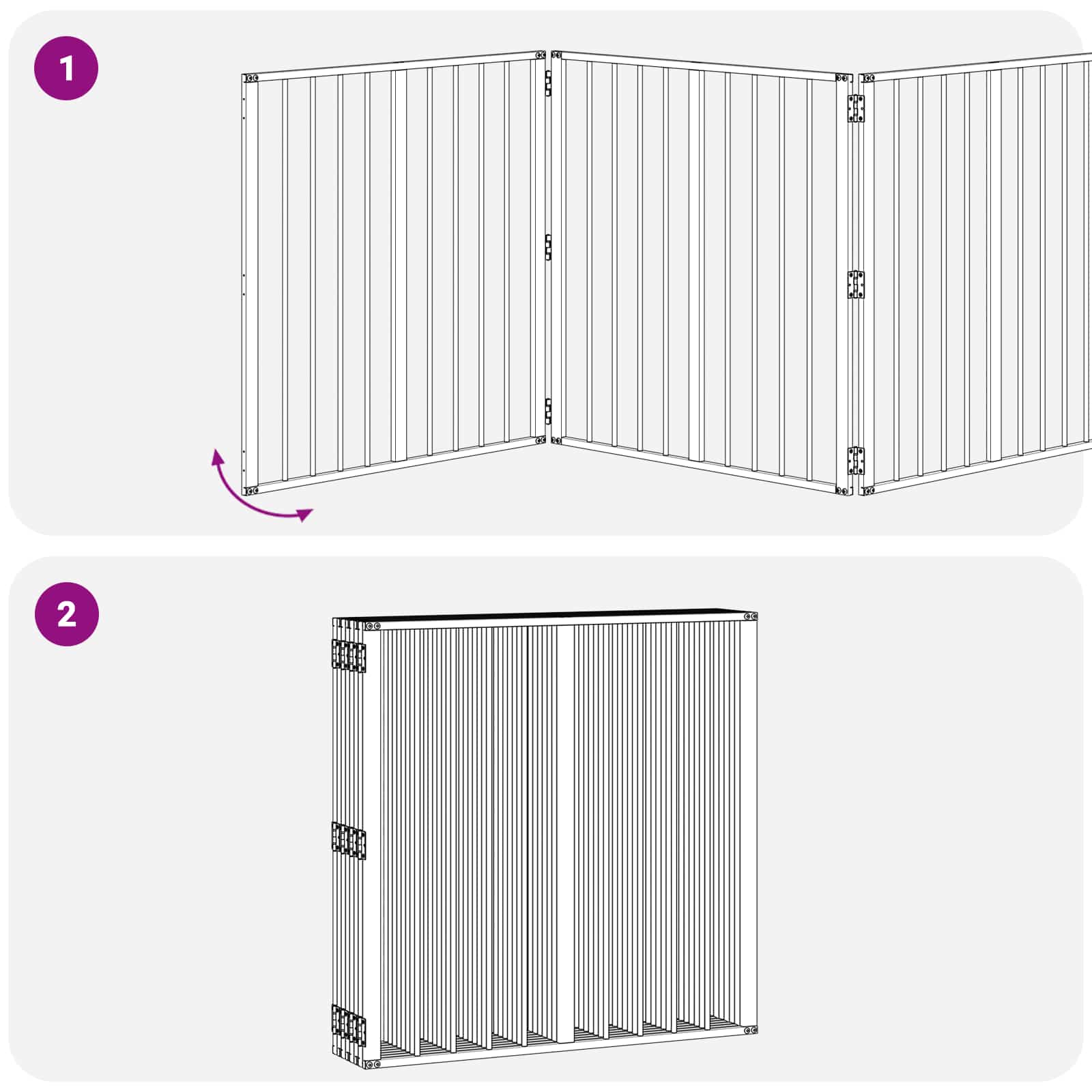 • Kuumasinkityn teräksen rakenne: Koko aitaus on valmistettu kuumasinkitystä teräksestä, joka tarjoaa tukevan ja kestävän rungon, joka kestää päivittäisen käytön kulumista. Tämä takaa sekä jäykkyyden että pitkän käyttöiän, mikä tekee siitä ihanteellisen ratkaisun energisille lemmikeille. Tämä materiaali takaa myös minimaalisen ylläpidon, sillä lisähoitoja ei tarvita.