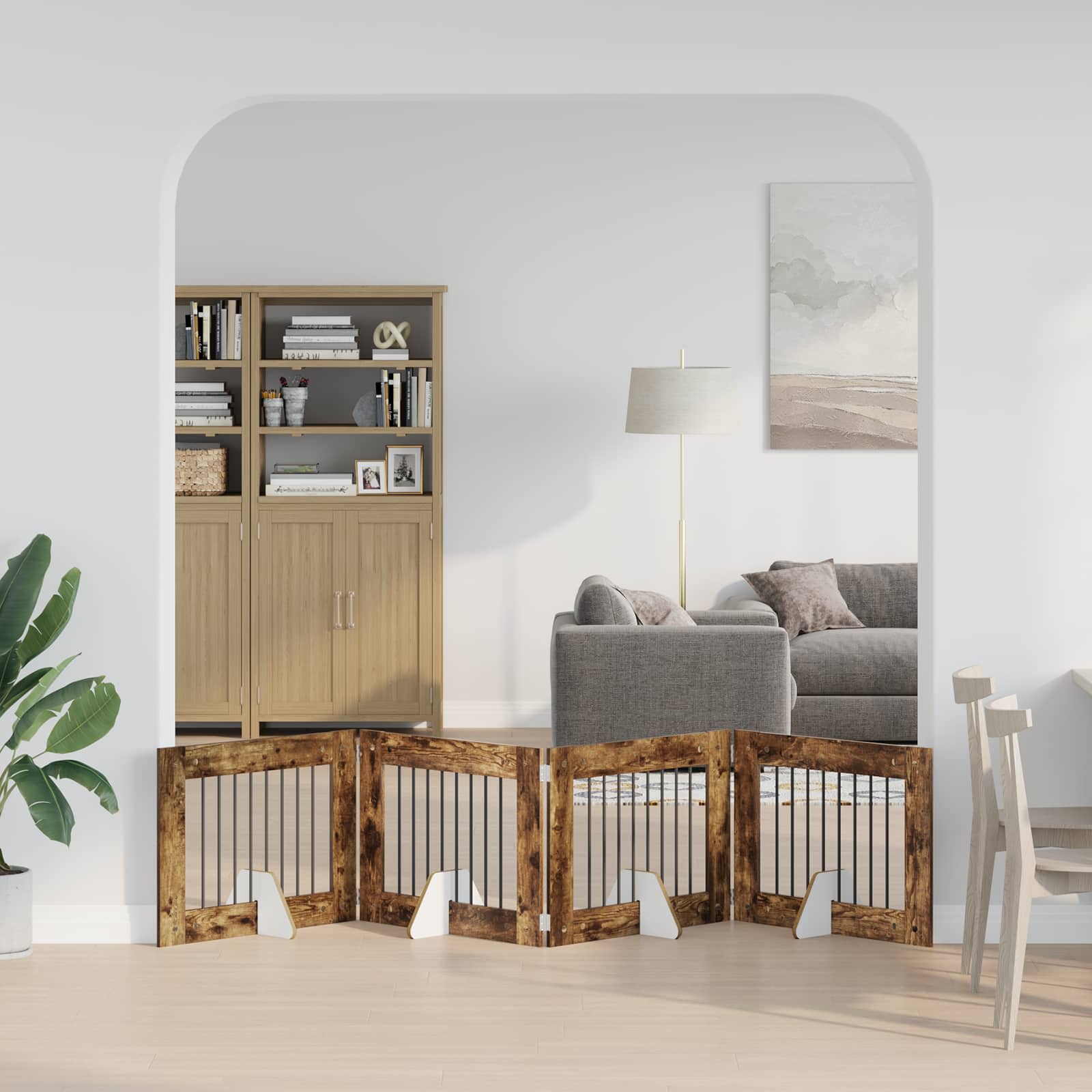 • Kokoontaittuva muotoilu: Kokoontaitettava rakenne tekee säilyttämisestä helppoa, erityisesti pienissä asunnoissa. Aidan pystyttäminen tai pakkaaminen onnistuu nopeasti ilman ylimääräistä vaivannäköä.