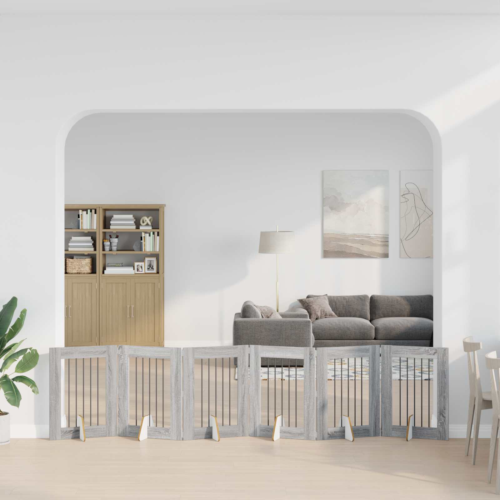 • Kokoontaittuva muotoilu: Kokoontaitettava rakenne tekee säilyttämisestä helppoa, erityisesti pienissä asunnoissa. Aidan pystyttäminen tai pakkaaminen onnistuu nopeasti ilman ylimääräistä vaivannäköä.