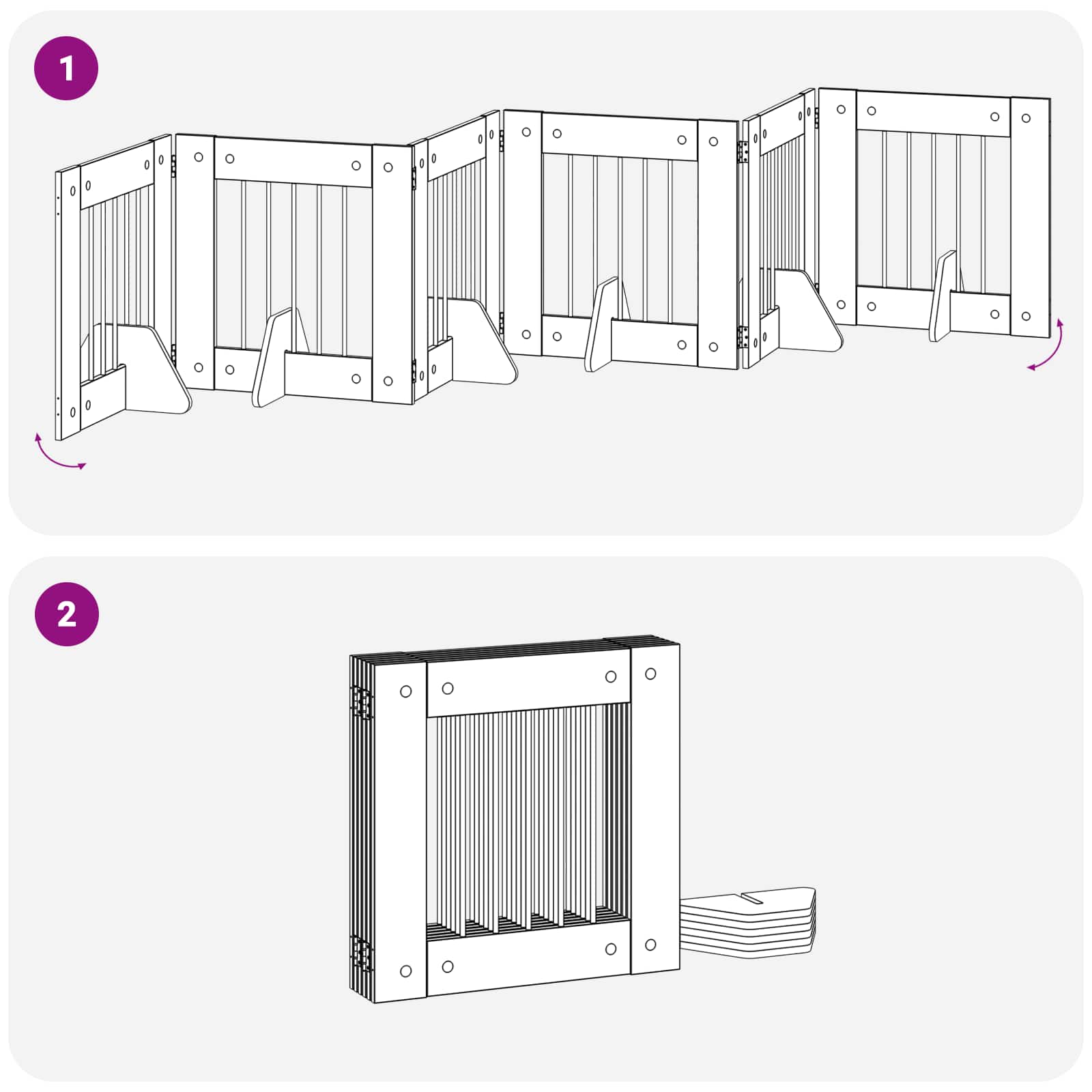 • Kokoontaittuva muotoilu: Kokoontaitettava rakenne tekee säilyttämisestä helppoa, erityisesti pienissä asunnoissa. Aidan pystyttäminen tai pakkaaminen onnistuu nopeasti ilman ylimääräistä vaivannäköä.