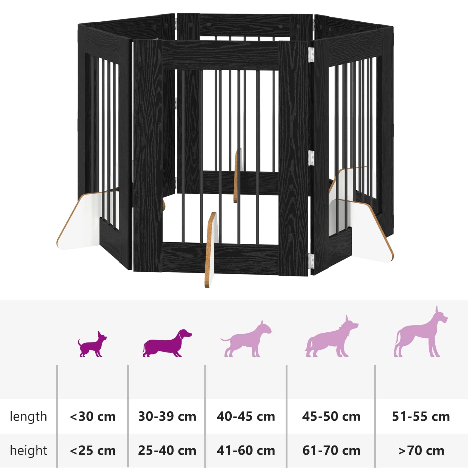 • Helppo kokoaminen: Kestävä muotoilu ei vaadi erikoistyökaluja kokoamiseen, joten kahden henkilön on helppo selvitä siitä nopeasti. Kokoamisen helppous tekee lemmikin tarpeiden mukaan huoneen muuntamisesta vaivatonta.