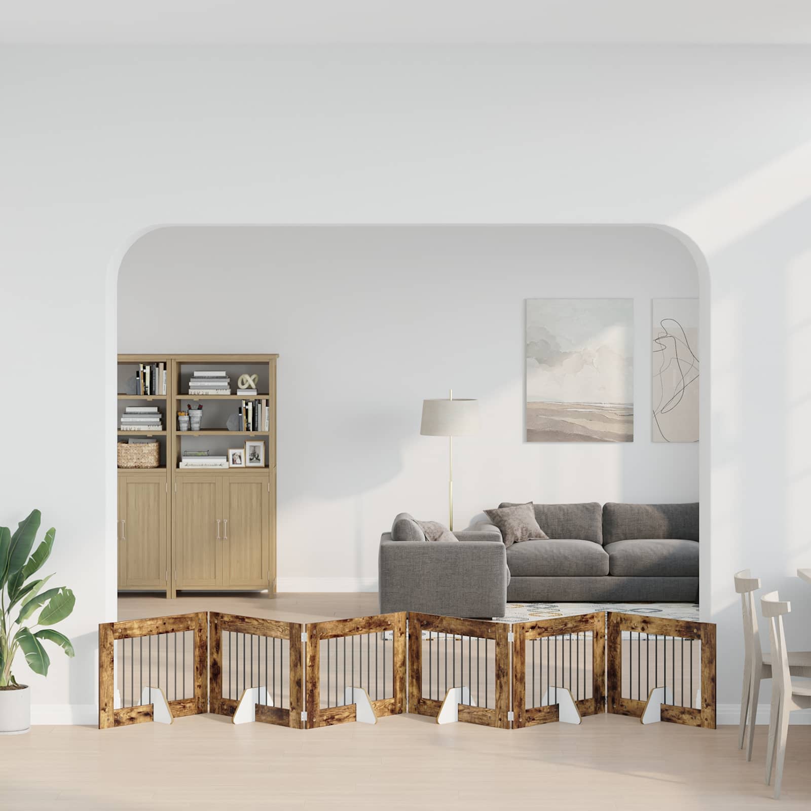 • Kokoontaittuva muotoilu: Kokoontaitettava rakenne tekee säilyttämisestä helppoa, erityisesti pienissä asunnoissa. Aidan pystyttäminen tai pakkaaminen onnistuu nopeasti ilman ylimääräistä vaivannäköä.