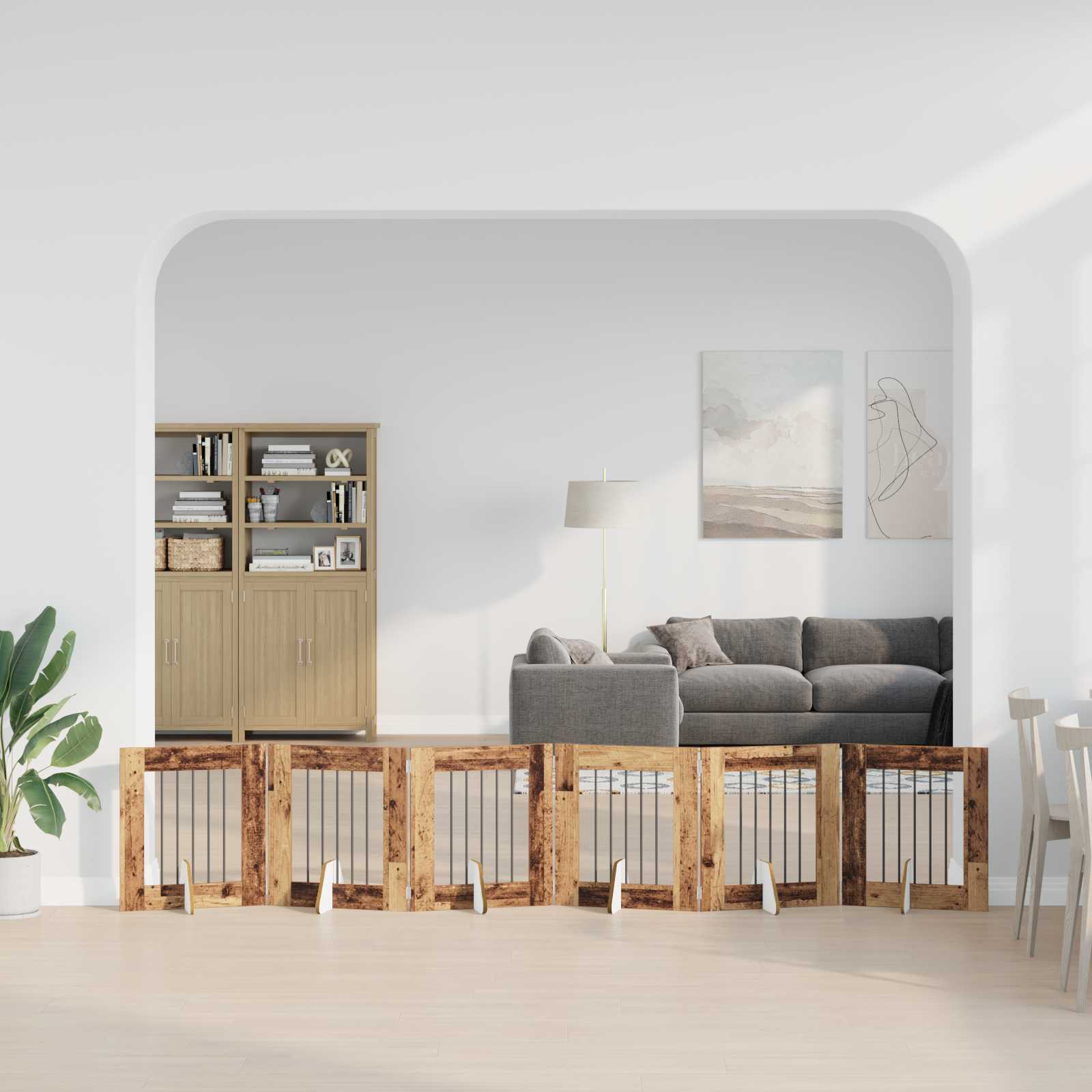 • Kokoontaittuva muotoilu: Kokoontaitettava rakenne tekee säilyttämisestä helppoa, erityisesti pienissä asunnoissa. Aidan pystyttäminen tai pakkaaminen onnistuu nopeasti ilman ylimääräistä vaivannäköä.