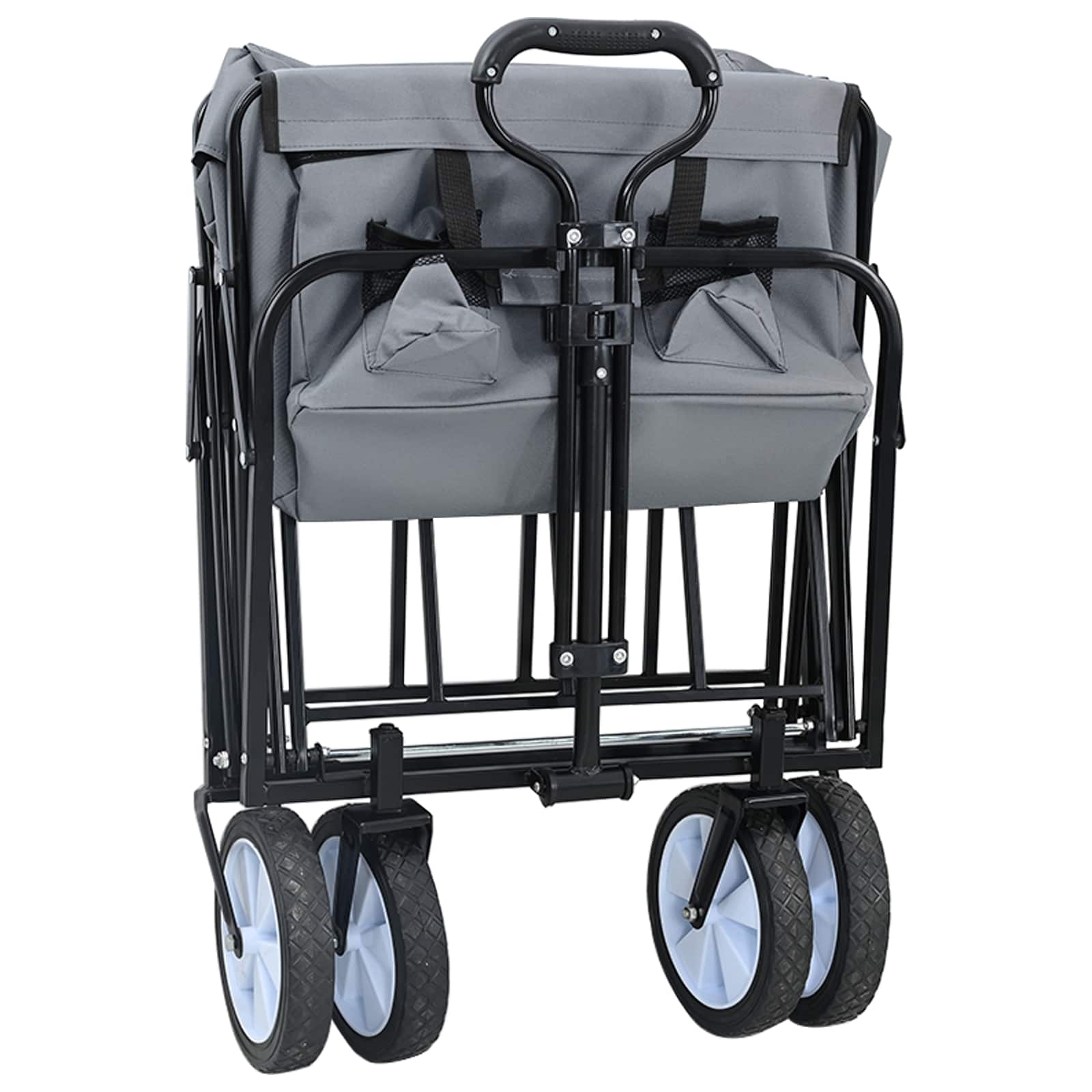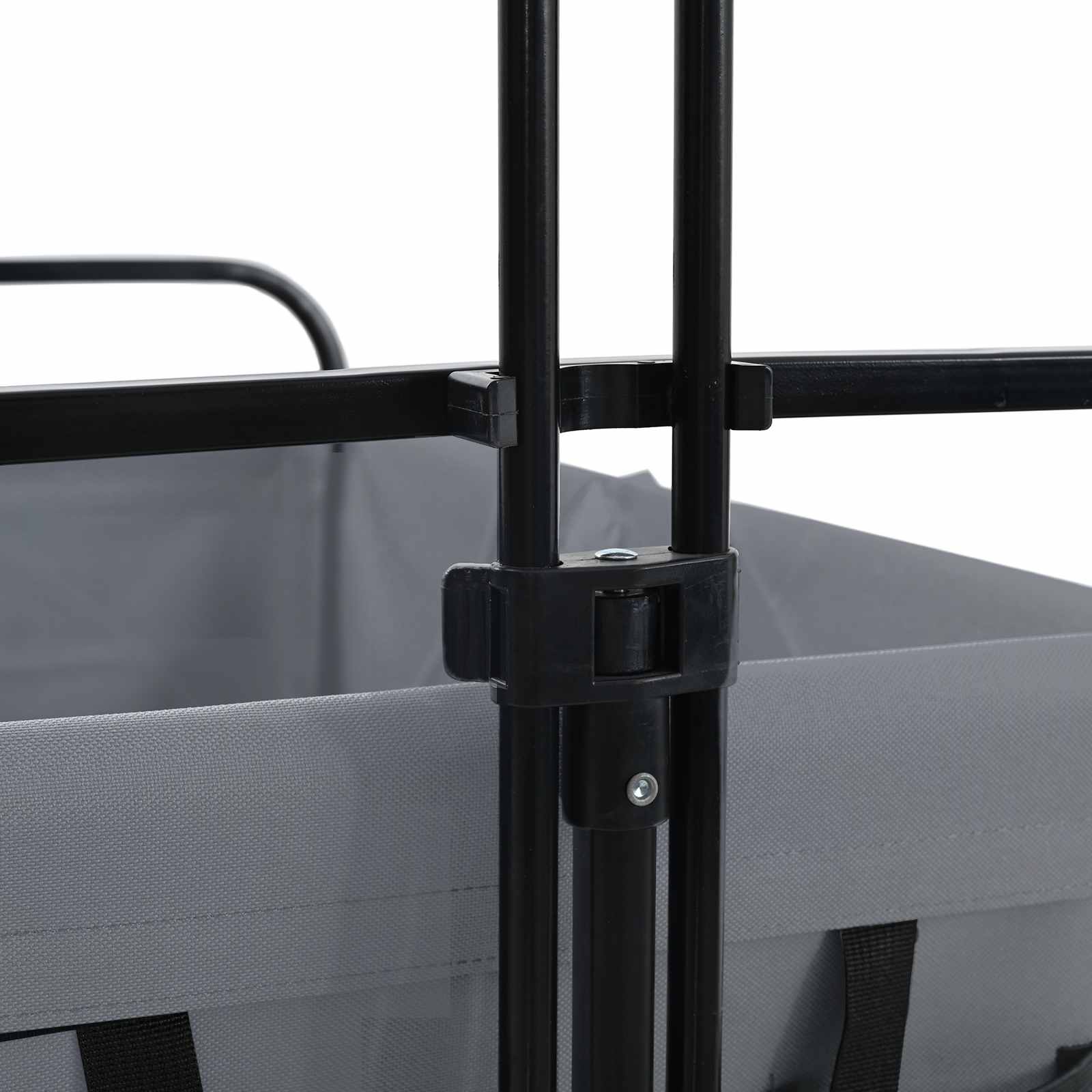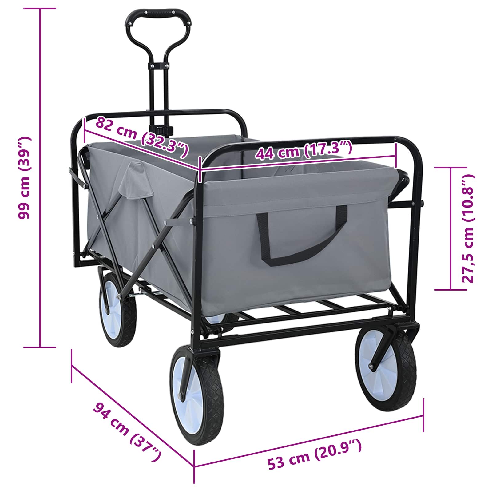 • Kestävä taitettava rakenne Helppo säilyttää ja kuljettaa. Kun ei käytössä, se taittuu kompaktiin muotoon. Vahva runko pitää kärryn rakenteen ja suorituskyvyn ennallaan, vaikka käyttö olisi päivittäin.