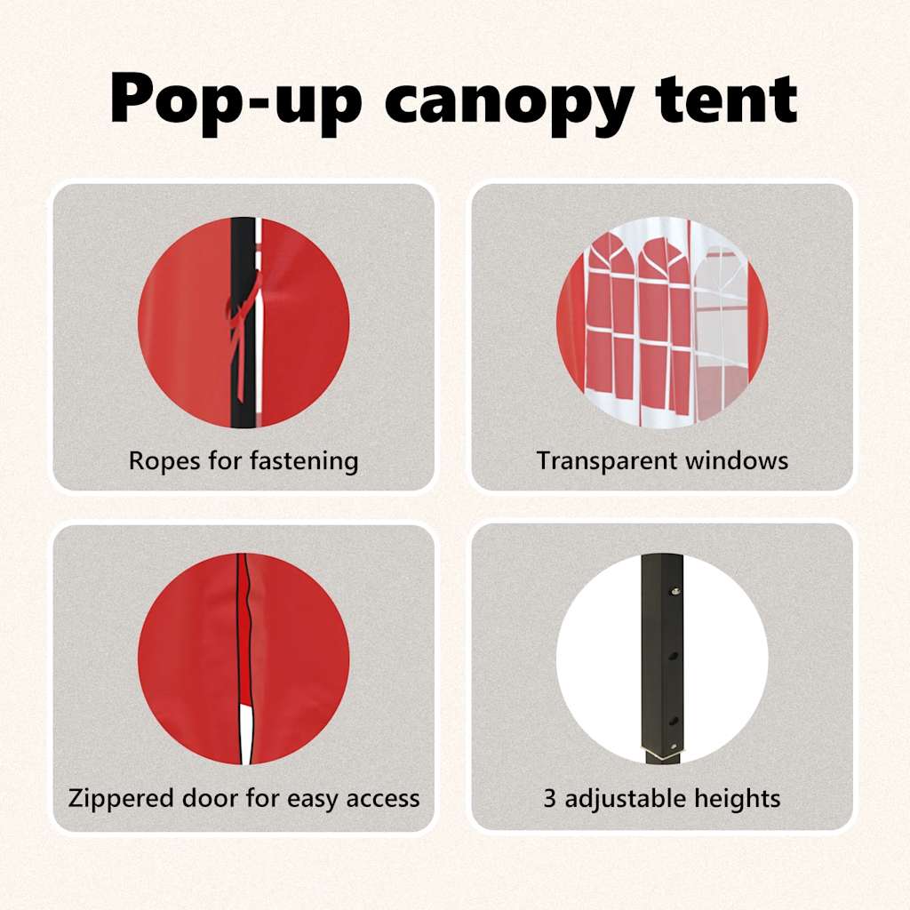 Kokoontaittuva juhlateltta sivuseinillä punainen 3×3 m