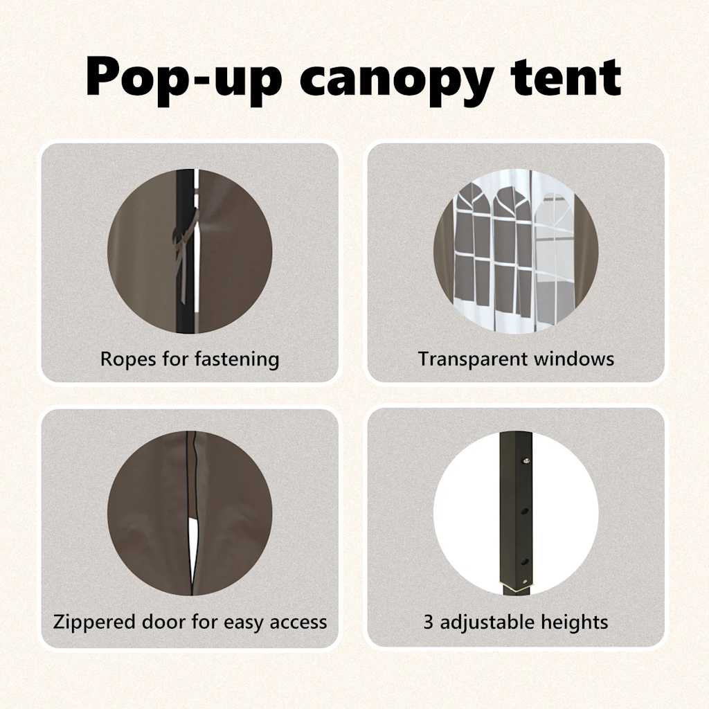 Kokoontaittuva juhlateltta sivuseinillä taupe 3×3 m