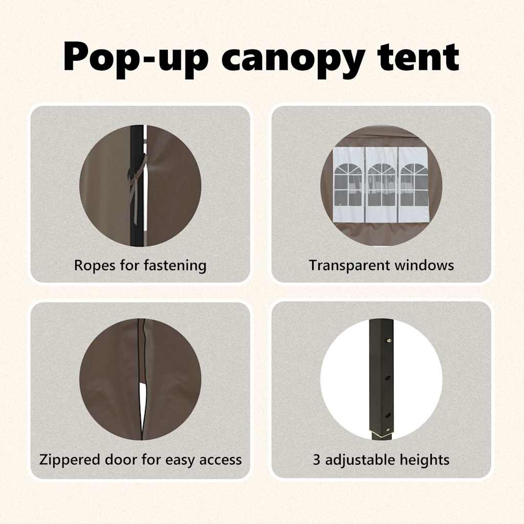 Kokoontaittuva juhlateltta sivuseinillä taupe 3×6 m