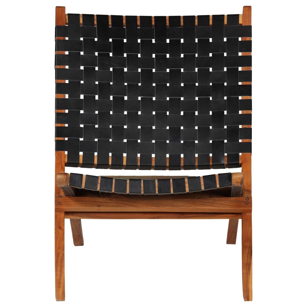 Kokoontaittuva nojatuoli ristiinpunottu musta aito nahka